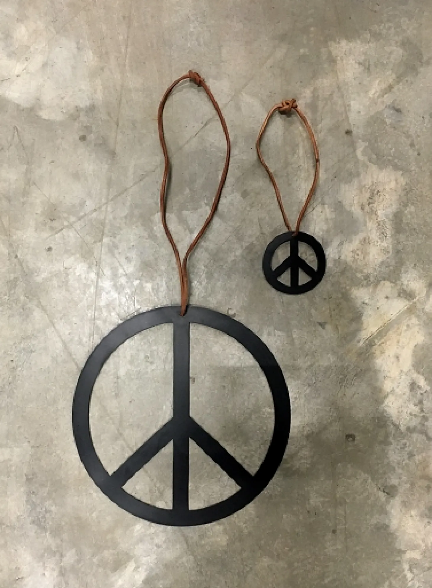 Produktinformationen „Friedenszeichen aus Metall mit Lederband, Ø 10 cm“