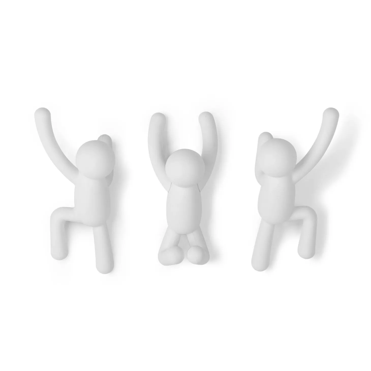 Die BUDDY Wandhaken weiß von Umbra sind nützlich, um Kleidung oder andere Gegenstände an der Wand aufzuhängen. Die witzigen kleinen Männchen überzeugen optisch, sind zusätzlich aber auch noch sehr praktisch um herumliegendes ordentlich beiseite zu räumen. Im Lieferumfang sind drei Wandhaken enthalten.