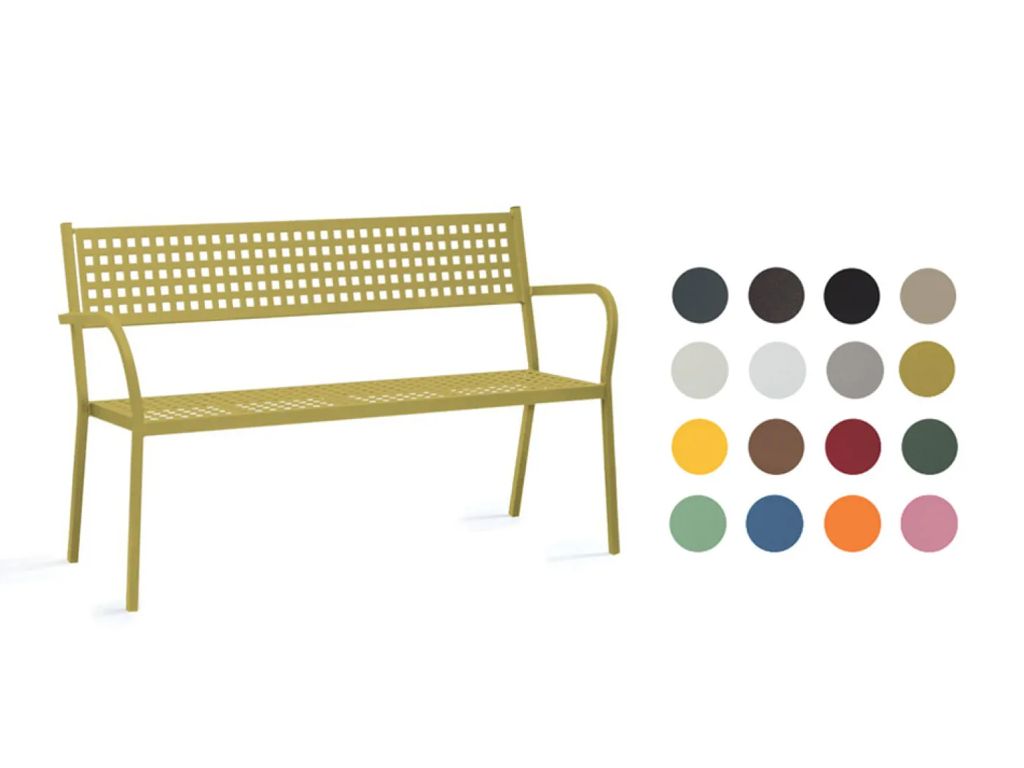 Verbeignen Sie schon bald den nächsten freien Tag auf der Bank mit Armlehne Alice von Vermobil. Die Gartenbank besticht durch Ihre besondere Prägung sowie die große Farbauswahl. Die galvanisierte Oberfläche der Gartenbank bietet einen optimalen Rostschutz gegen Witterungseinflüsse und ist somit optimal für den Außenbereich geeignet. Damit Sie das ganze Jahr über Freude an der Bank haben, können Sie diese im Winter auch im Innenbereich weiter nutzen. Passende Stühle und Tische der Alice Serie in zahlreichen Farben finden Sie bei uns im Shop.