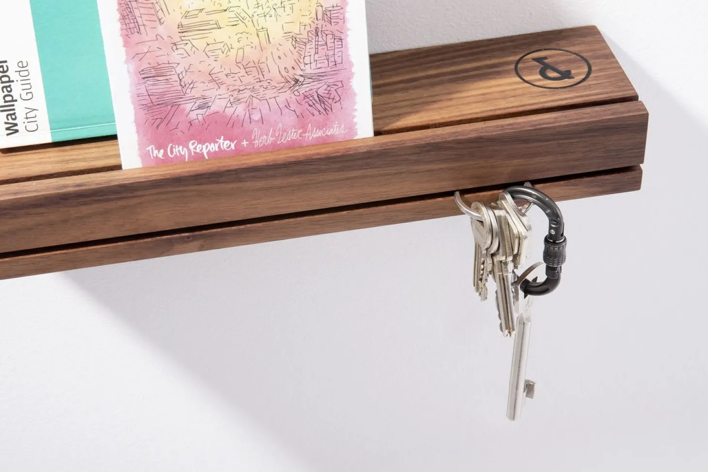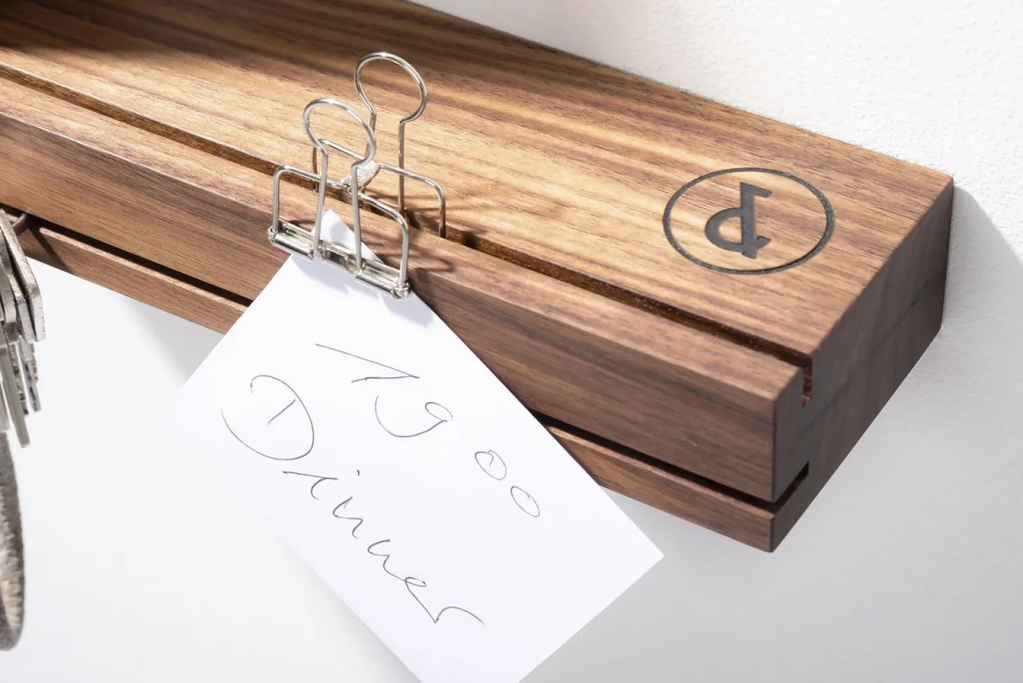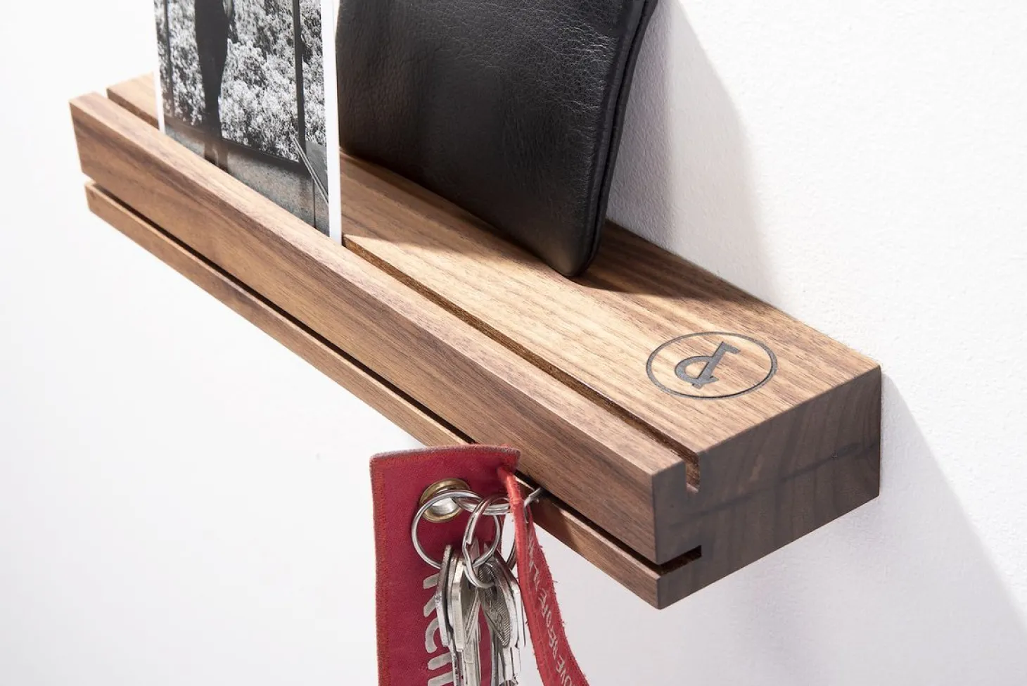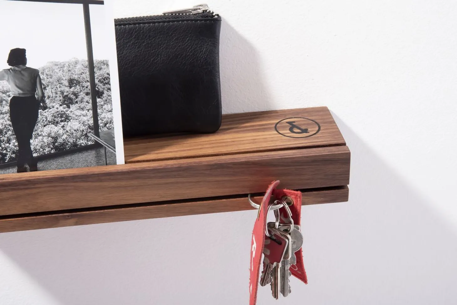 Mit dem Schlüsselbrett Nussbaum 01 von weld & co haben Sie für Ihre eigenen vier Wände einen perfekt Ablageplatz für Schlüssel, Portemonnaie, (Sonnen-) Brille, Smartphone, Coffee-to-Go-Becher . Ob beim Nachhause kommen oder Verlassen des Hauses – mit der praktischen Schlüsselbrett-Ablage werden Sie Ihre Schlüssel nicht mehr so schnell verlegen oder vergessen. Die hochwertig verarbeitete Schlüsselablage passt perfekt in jeden Haushalt. In den vorderen Schlitz können Schlüssel und Schlüsselringe gesteckt werden. Auf der Oberseite der Schlüsselablage aus Nussbaumholz ist ein weiterer Schlitz in den beispielsweiße Briefe oder auch dekorative Bilder hineingestellt werden können oder mithilfe eines Briefklemmers Notizen angeheftet werden können.