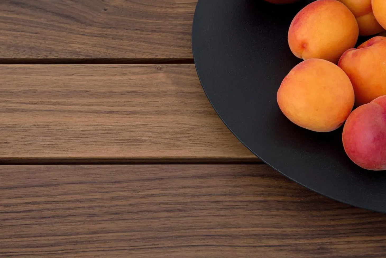 Das dunkle hochwertige Nussbaumholz hat eine geölte Oberfläche, durch diese kommt die feiner Maserung edel zur Geltung. Das pulverbeschichtete Metallgestell schafft mit den filigranen Beinen den perfekten Kontrast. Der Freiraum unter der 45 cm hohen Bank kann natürlich eben so praktisch genutzt werden um dort Schuhe, Kisten und Körbe zu verstauen.