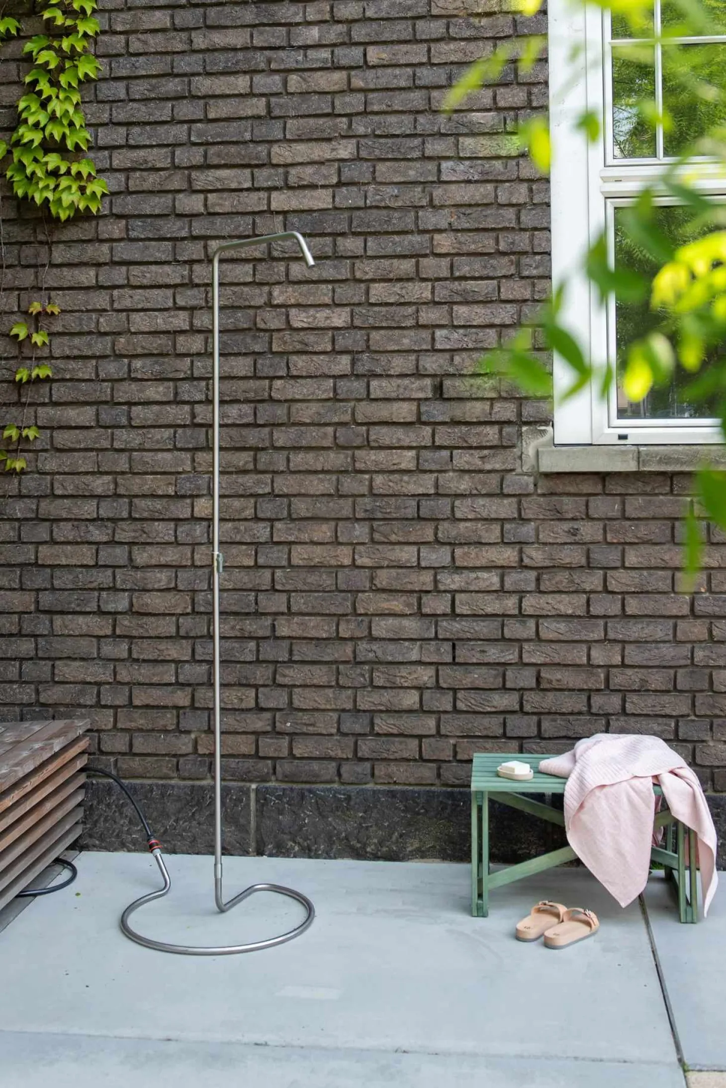 Der spezielle Gartenschlauchanschluss versorgt die Outdoor-Dusche mit Wasser. Schließen Sie einen Gartenschlauch, welcher nicht im Lieferumfang enthalten ist, an der Außendusche an und genießen Sie Ihre Abkühlung. Aufgrund der leichten Konstruktion, welche nur 5 kg wiegt, können Sie „Serpentine“ ganz einfach an einen beliebigen Ort in Ihrem Garten stellen. Wollen Sie nicht nur duschen, sondern zugleich auch der Umwelt noch etwas Gutes tun? Dann können Sie in der Nähe eines Blumenbeets oder auf dem Rasen duschen und die Gartendusche regelmäßig umstellen. Dadurch erhalten Sie eine angenehme Abkühlung und gießen Ihren Gartenbereich gleichzeitig mit Wasser. Eine erfrischende Dusche – das Blumen gießen bereits erledigt – an die Umwelt gedacht – all diese Dinge machen Sie gleichzeitig, wenn Sie mit der mobilen Gartendusche Serpentine von Weltevree duschen.