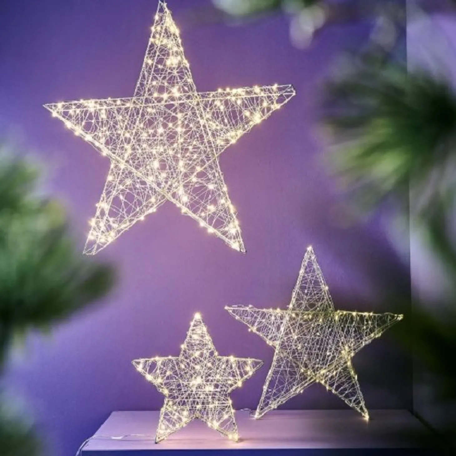 Mit dem 3D-Drahtstern von Werner Voß bringen Sie Ihr Zuhause in der Weihnachtszeit zum Strahlen. Dieser Stern aus Draht ist erhältlich in zwei Größen, die sich perfekt für ein Regal oder eine Fensterbank eignen. Mit seiner Timer-Funktion können Sie ihn ganz einfach über den Tag verteilt ein- und ausschalten. An festlichen Tagen ist der Deko Stern eine tolle Ergänzung für jeden Raum in Ihrem Zuhause. Der Stern ist aus robustem Draht gefertigt und wird Ihnen viele Jahre Freude bereiten.