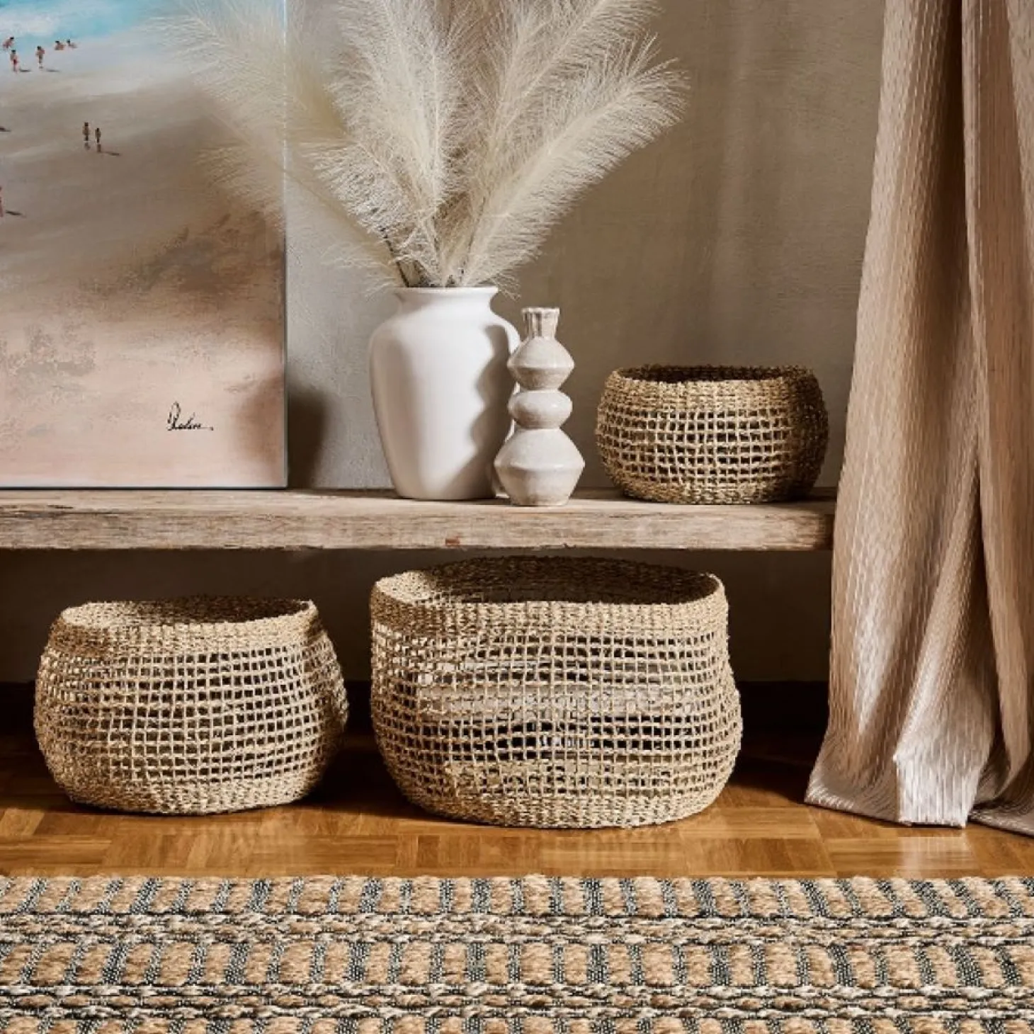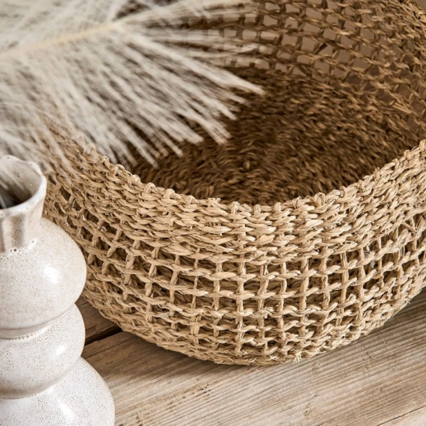 Alle Naturliebhaber und Liebhaber der Inneneinrichtung aufgepasst! Wir stellen Ihnen den Korb Halong Seegras von Werner Voß vor, ein mit größter Sorgfalt und Hingabe gefertigtes Meisterwerk. Stellen Sie sich die Gelassenheit der Natur in einem wunderschön geflochtenen Korb vor. Der Korb Halong aus exquisitem, natürlichem Seegras verschmilzt nahtlos den Charme der Natur mit der Eleganz Ihres Wohnraums. Mit seinen Maßen von 40×27 cm ist dieses vielseitige Stück in drei Größen erhältlich, um all Ihre Aufbewahrungs- und Dekorationsbedürfnisse zu erfüllen. Lassen Sie sich von der kleinen Variante mit den Maßen T.24 cm und H.15 cm verzaubern. Suchen Sie etwas Größeres? Unser mittelgroßer Korb mit einem Durchmesser von 32 cm (T) und einer Höhe von 20 cm (H) bietet ein größeres Fassungsvermögen, ohne dabei den bezaubernden Charme des Korb Halong zu verlieren. Verstauen Sie darin die Dinge des täglichen Bedarfs oder setzen Sie einen auffälligen Akzent. Für diejenigen, die sich nach grenzenloser Schönheit sehnen, wird unsere extragroße Version Ihre kühnsten Träume übertreffen. Mit einem Durchmesser von T.40 cm und einer beeindruckenden Höhe von H.27 cm wird dieser Korb aus Seegras Ihre wertvollen Gegenstände mit Anmut und Raffinesse aufbewahren.