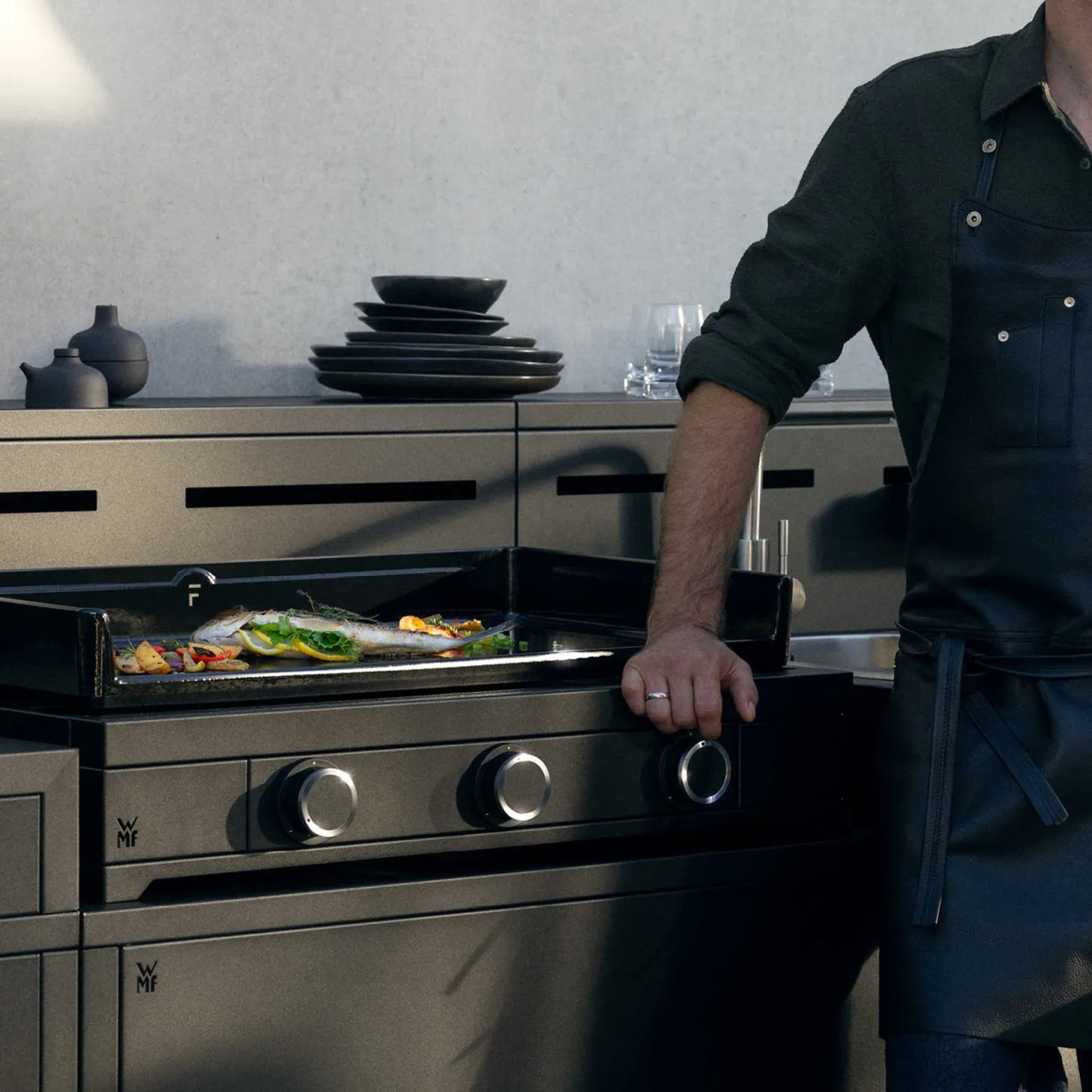 Egal, ob Sie nur für sich und die Familie grillen oder große Gartenpartys ausrichten – eine WMF Outdoorküche bringt Professionalität, Stil und Freude in Ihre Outdoor-Momente. Dank der flexiblen Konfigurationen und der Kompatibilität mit allen WMF Planchas entsteht genau die Küche, die zu Ihnen passt.