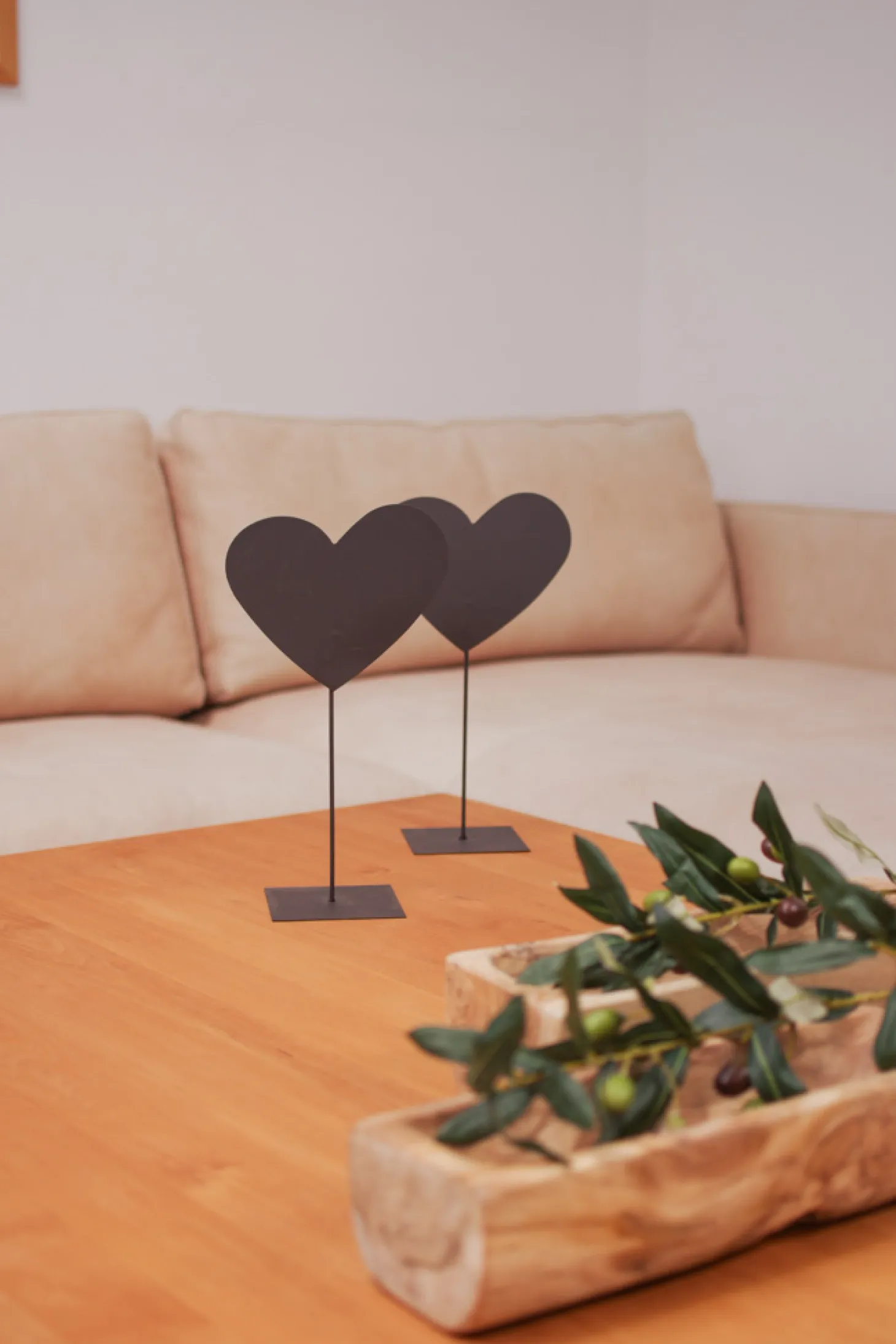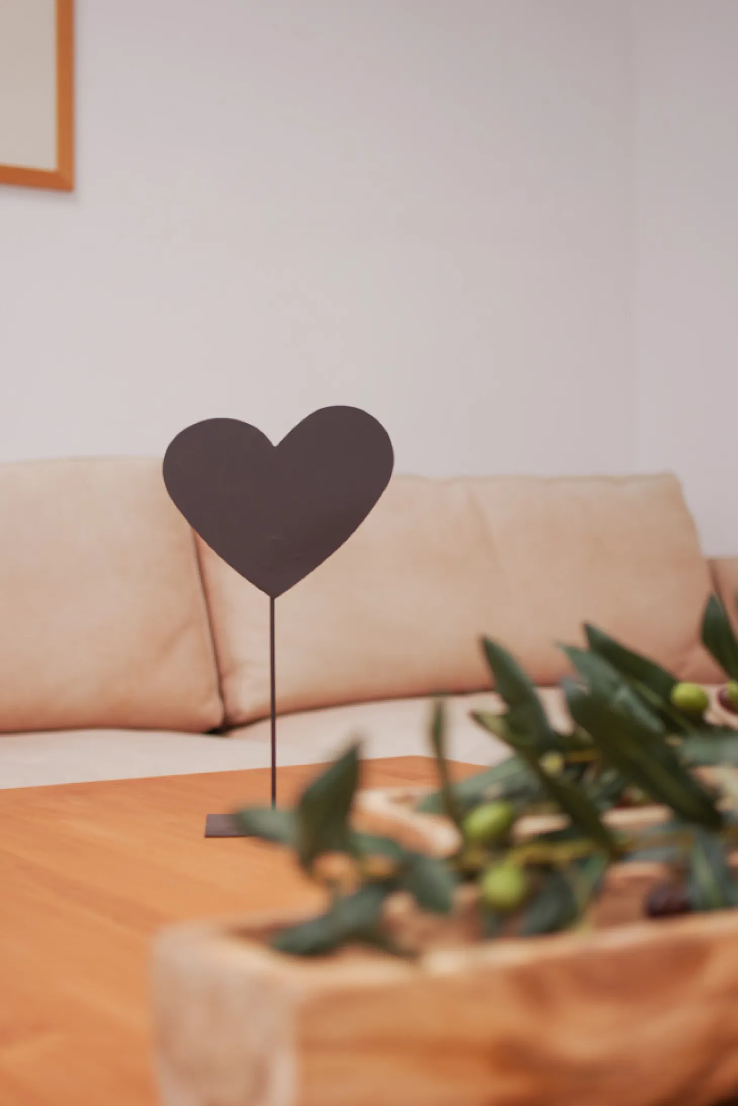 Aber auch als Tischdekoration für Geburtstage oder Hochzeiten kann das Dekoobjekt von der Wohnmanufactur genutzt werden – schreiben Sie den Namen des Gastes mit Kreidestift auf das Herz, um ihm einen Platz zuzuweisen. Ein zeitloses und vielseitiges einsetzbares Wohnaccessoire, welches für zahlreiche Anlässe genutzt werden kann. Lackiert ist der Eisenständer mit einem hochwertigen, schwarzbraunen Lack.