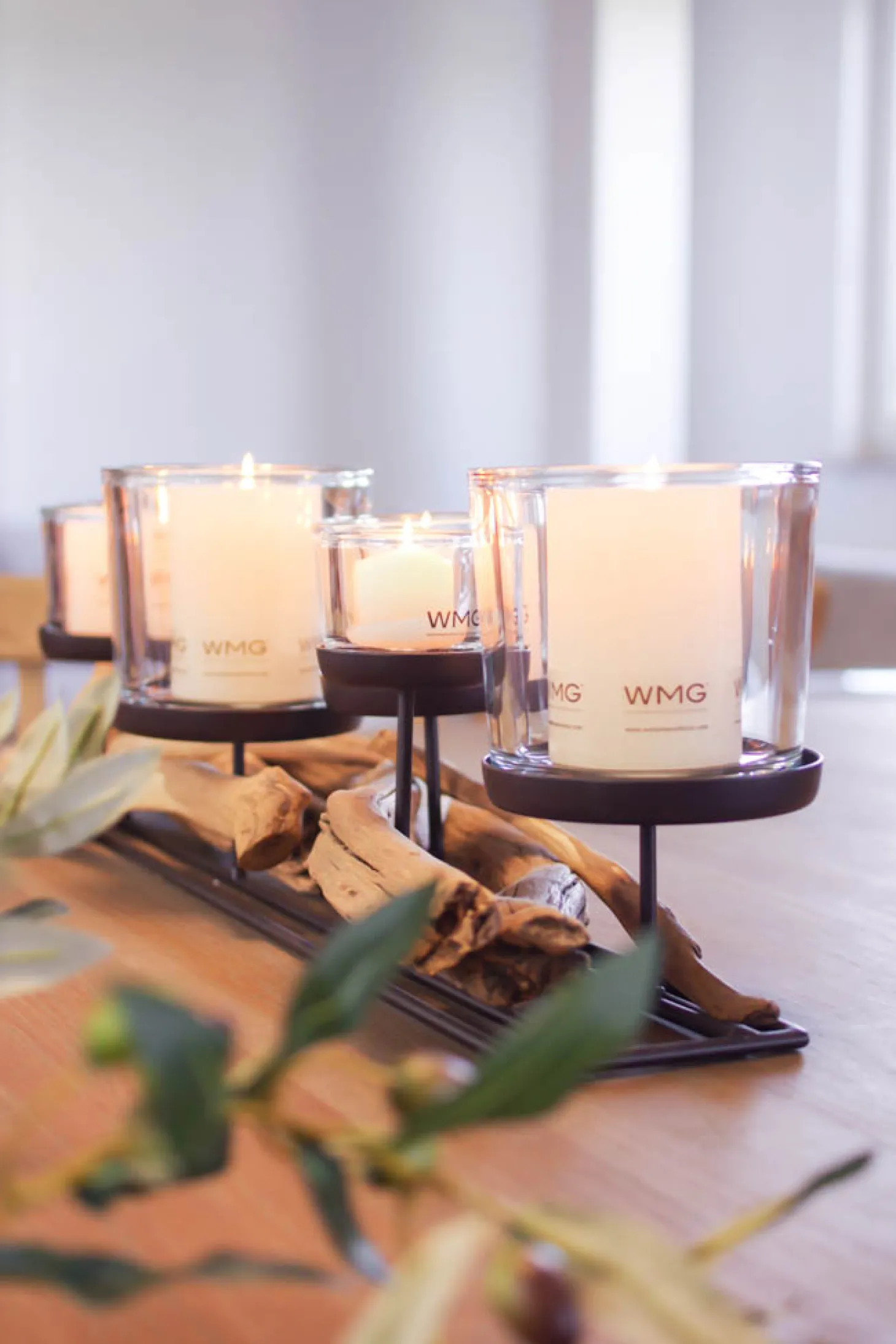 Dank der mitgelieferten Gläser lässt sich der Leuchter flexibel dekorieren – ob mit Teelichtern, Stumpenkerzen oder saisonalen Akzenten. Erhältlich ist der WMG Kerzenständer in vier Größenvarianten, die jeweils mit unterschiedlich großen Gläsern ausgestattet sind.