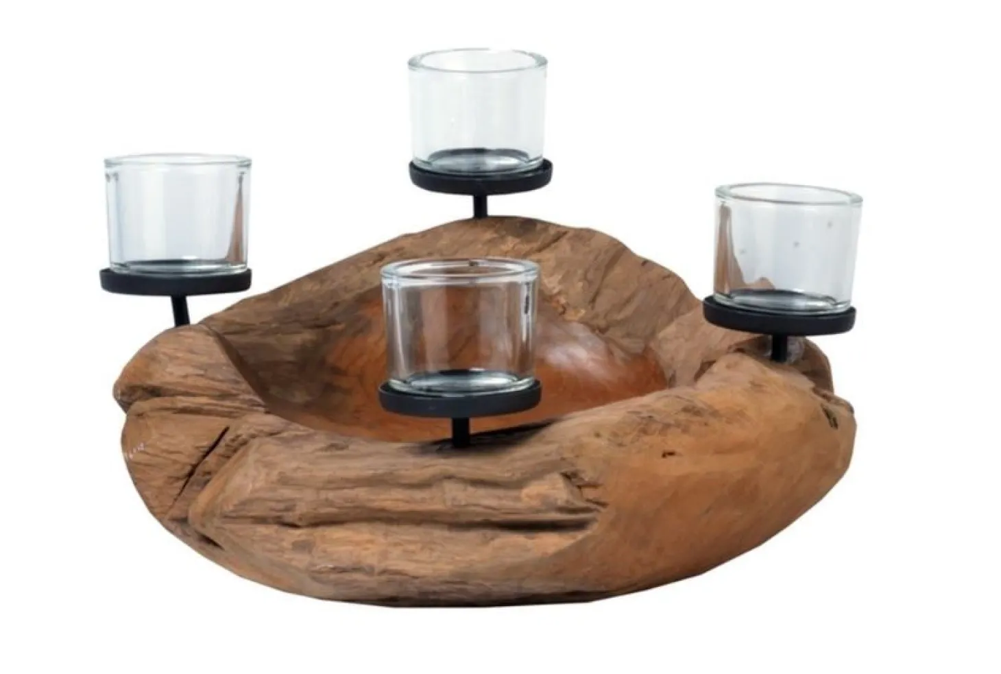 Produktinformationen „Schale und Kerzenhalter Teak unfinish 4 flg. h 20cm,d 30cm“