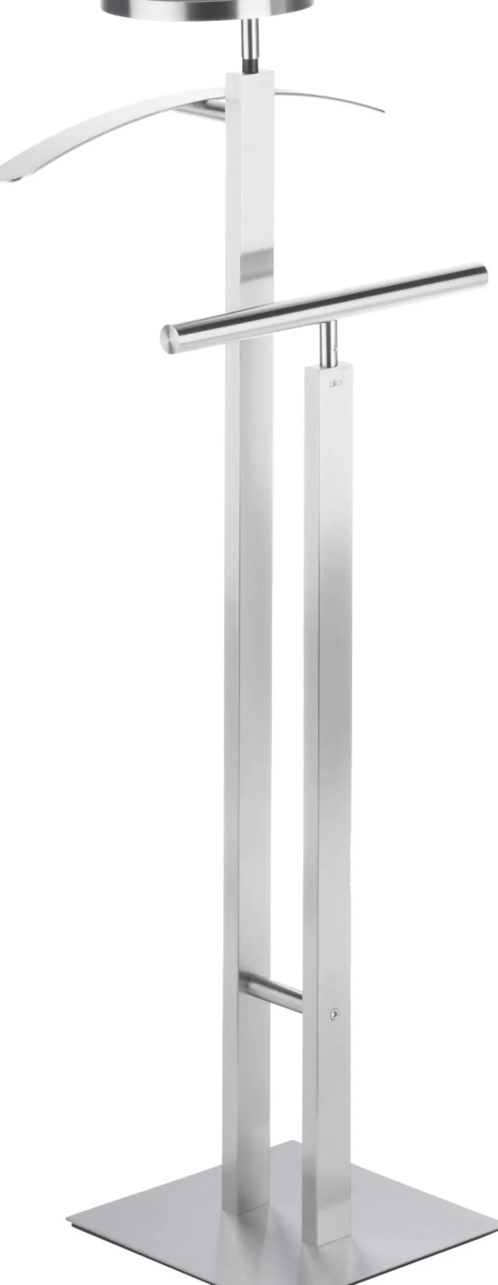 Zack bietet mit seinem stummen Diener einen praktischen Kleiderständer aus matt gebürstetem Edelstahl. Das Modell Atacio ist ausgestattet mit einer vorteilhaften Ablage für Ihren Schmuck, Ihren Uhren sowie Ihrer Brille und vielem weiteren mehr. Außerdem erfüllt er selbstverständlich mit dem integrierten Kleiderbügel und der universellen Garderobe seinen Zweck als Garderobe. Vor allen Dingen aber ist er ein Must have für alle Design-Liebhaber. Denn solch ein ausgefallenen und trendigen Kleiderständer finden Sie nur selten.