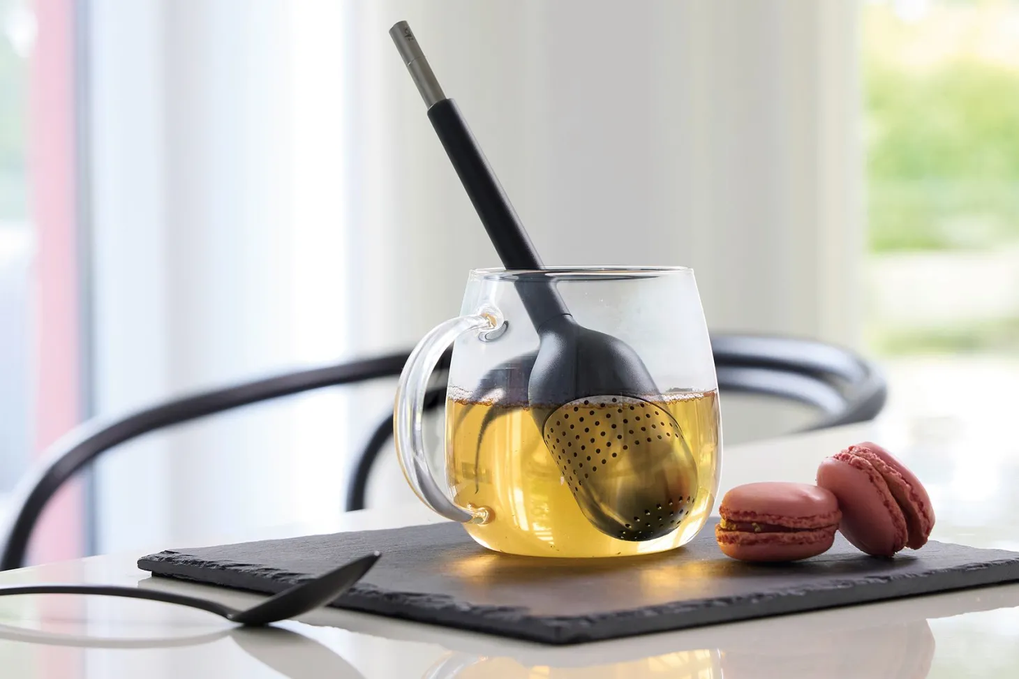 Der Stab lässt sich durch leichten Fingerdruck öffnen und schließen, und die Einrastfunktion sorgt dafür, dass er beim Befüllen sicher und stabil bleibt. Das großzügige Quellvolumen des Teeballs ist ideal für alle Arten von losen Teeblättern – von Schwarztee über Grüntee bis hin zu Kräuter- und Früchteteemischungen – und bietet den Teeblättern genügend Platz, um ihr volles Aroma abzugeben.