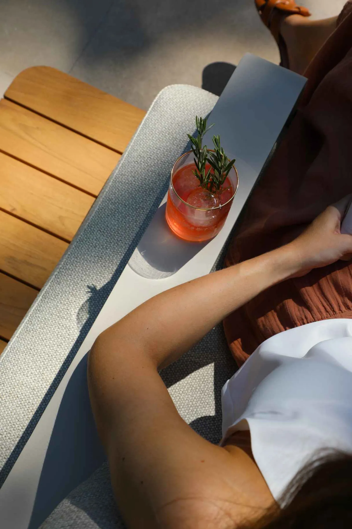 Mit einer Sitzbreite von 190 cm, Tiefe von 80 cm und einer angenehmen Sitzhöhe von 40 cm bietet Dox ausreichend Platz für zwei Personen. Die Gesamthöhe von 84 cm ergibt sich aus dem formschön integrierten Rückenteil, das ebenso wie die Armlehnen nicht nur funktional, sondern auch ein echtes Design-Statement ist. Der seitlich integrierte Beistelltisch ist auf 22,5 cm Höhe angebracht – perfekt für Getränke, Bücher oder kleine Alltagsgegenstände.