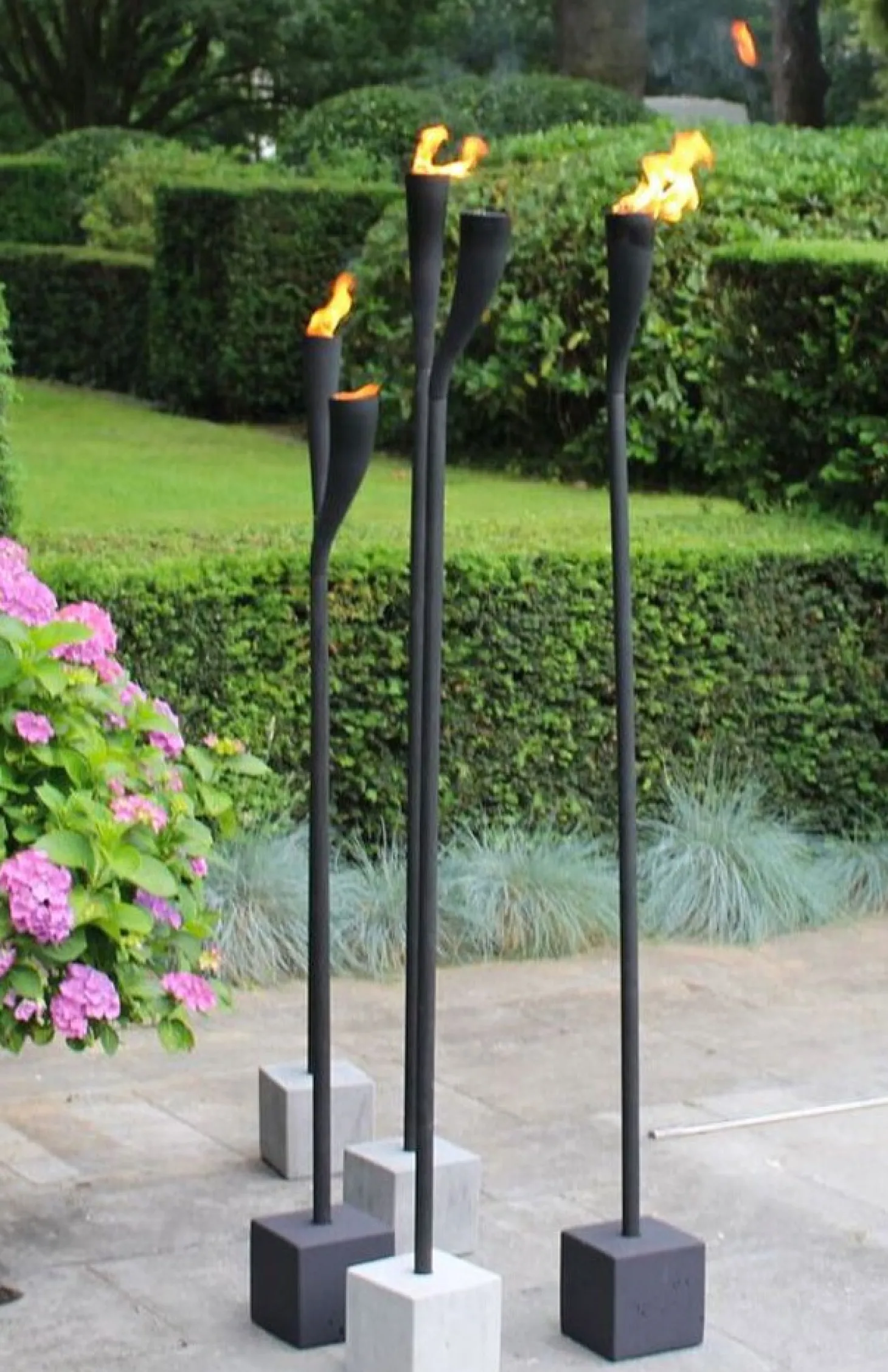 Die seperate Base, um ihr Jive und Vista Fackeln zu halten, ist perfekt für die Platzierung auf ihrer Terasse und anderen flachen Oberflächen. Hergestellt in einem stilvollem Finish aus Naturbeton, der die mattschwarzen Fackeldesigns ergänzt, materialisiert es in einer 10kg Würfelform.