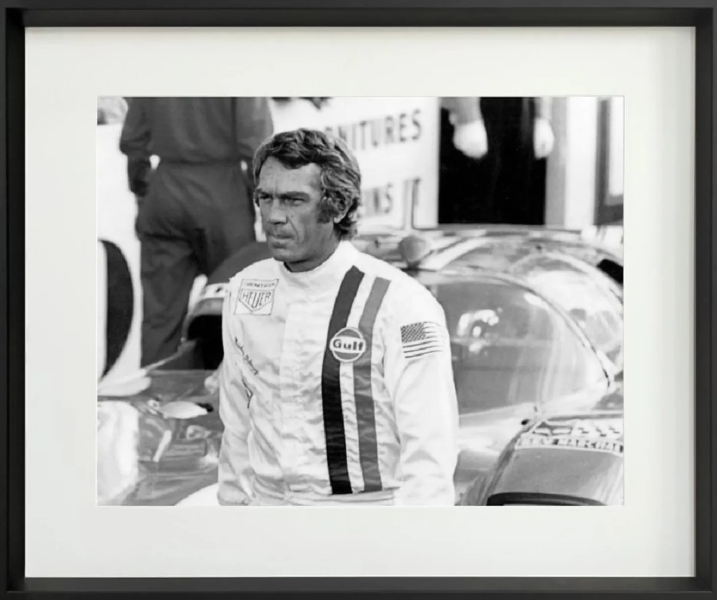 Das Bild Prestige – Le Mans 50*60 cm schwarz zeigt eine Szene aus dem französischen Film Le Mans.