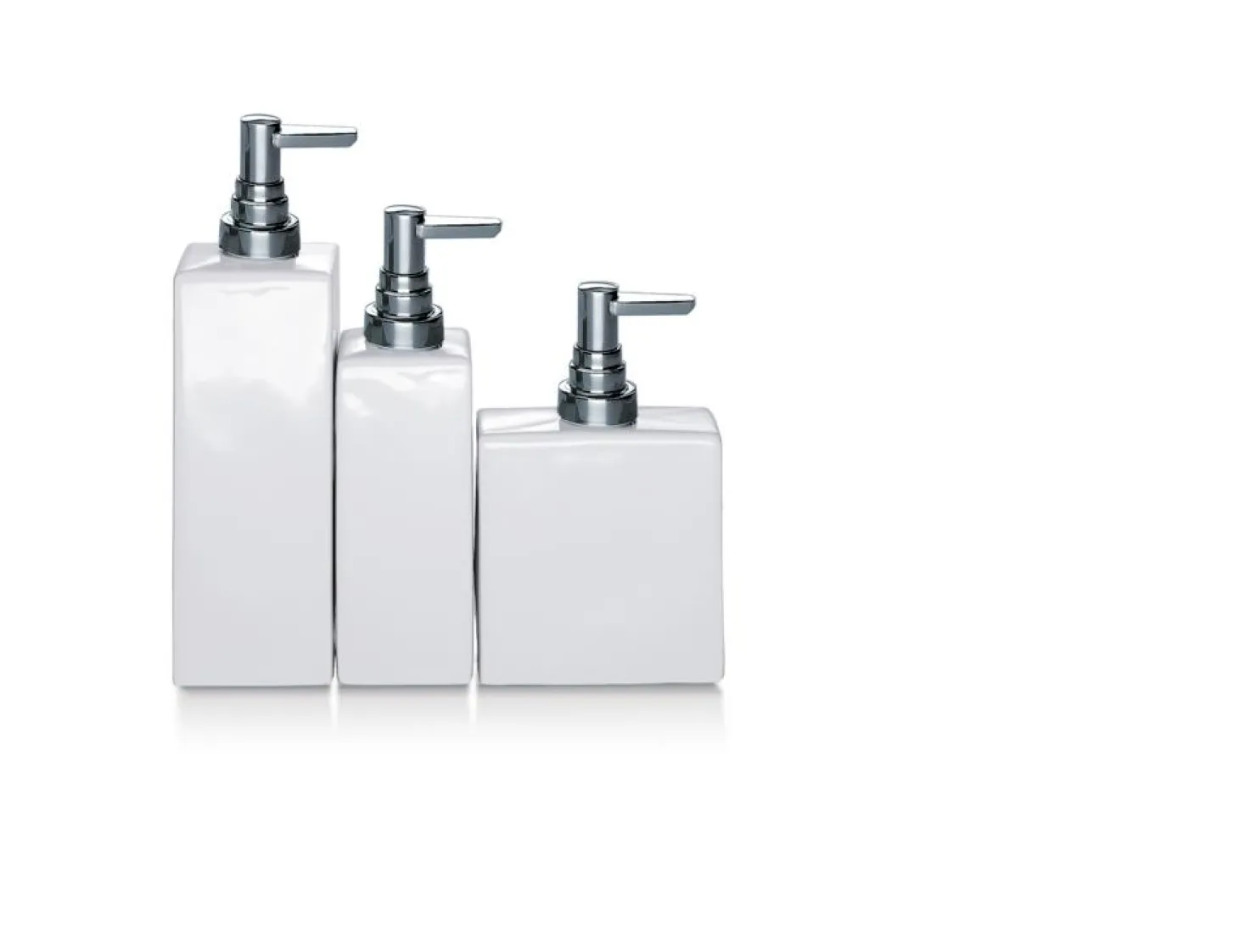 Der Seifenspender aus weißem Porzellan besticht durch sein geradliniges, schlichtes Design. Der Pumpenkopf aus Metall rundet das Bild ab. Ein tolles und praktisches Accessoires für jedes Badezimmer