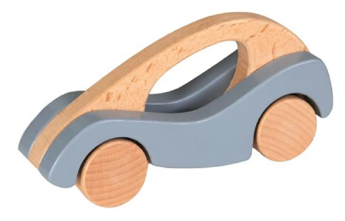 Das Rennauto ist aus Holz geformt und sehr robust, daher gut geeignet für Kinder. Das Spielzeugauto aus Holz ist mit einem mit einigen Blauen teilen versehen und mach optisch was her.