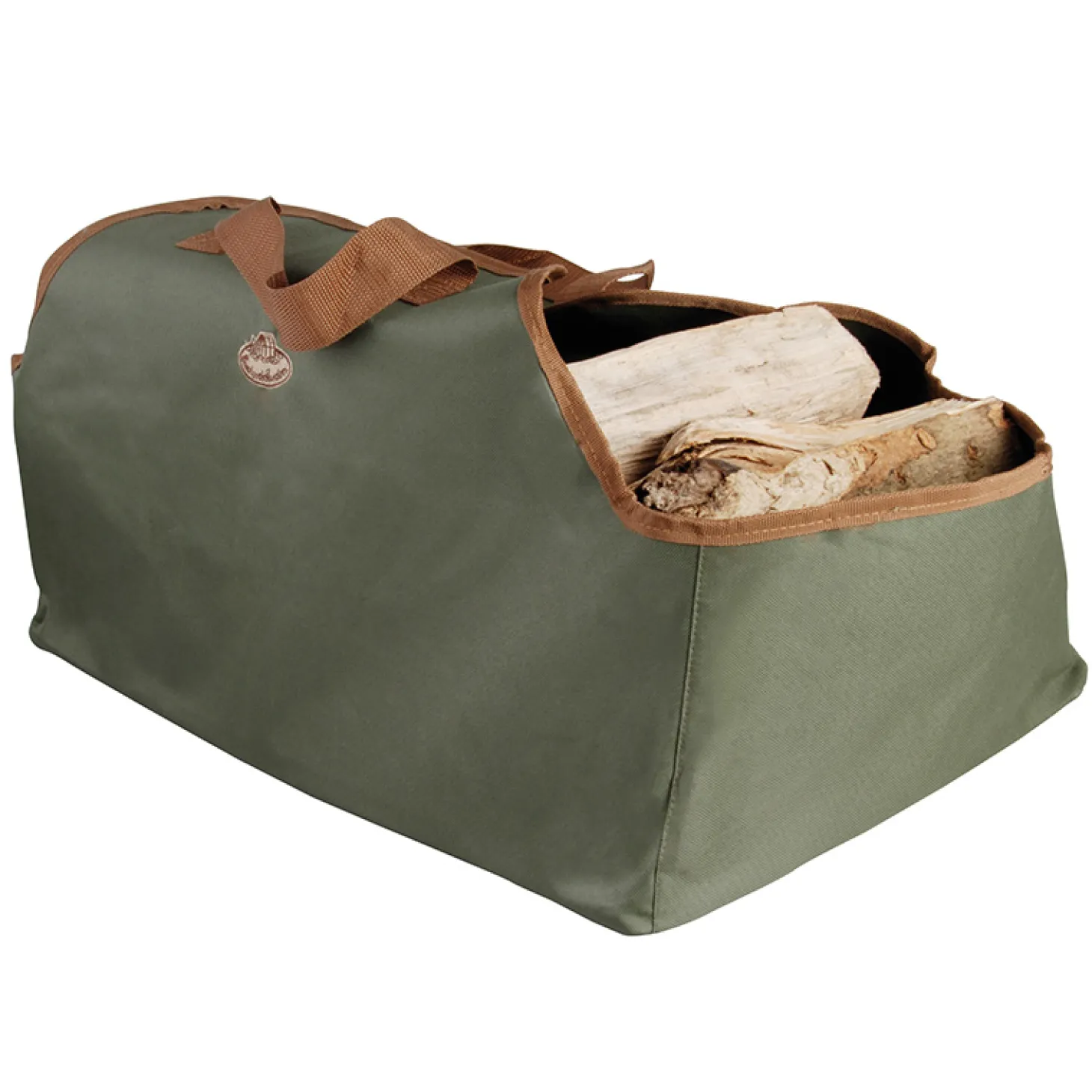 Aus strapazierfähigem, abwaschbarem Poyester, in schlichtemgrün/braun. Die geräumige Tragetasche kann, im Gegensatz zu Karren und Körben, ganz leicht zusammengefaltet und verstaut werden und ist ein praktisches Utensil für jeden Kamin-Besitzer.