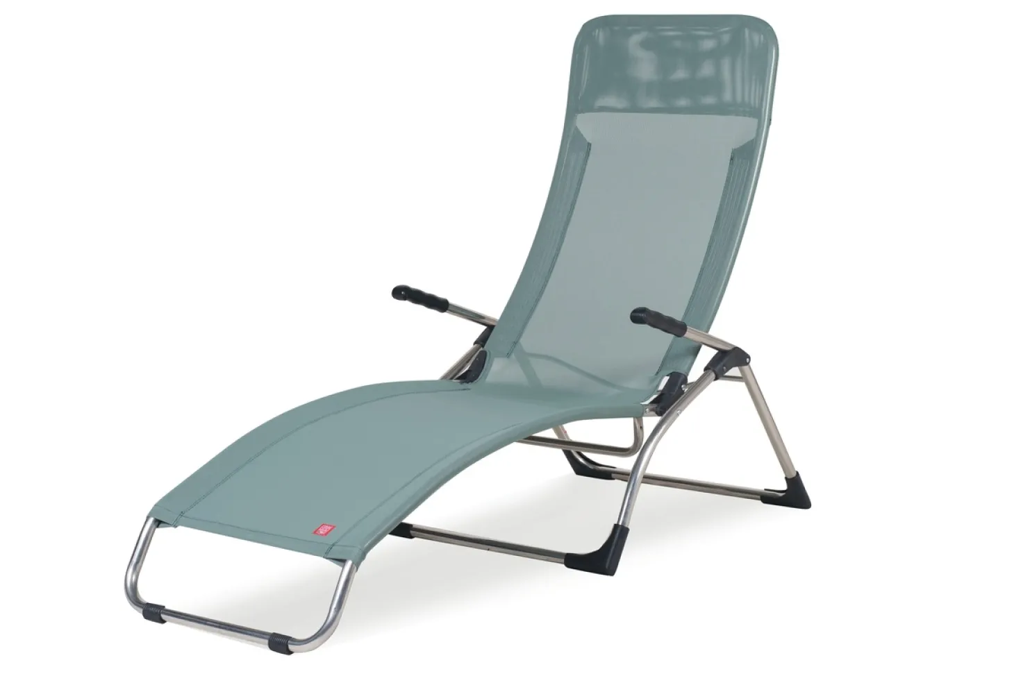 Das Gestell der Fiam Samba besteht aus robustem Aluminium – einem Material, das sich durch seine Stabilität und Leichtigkeit auszeichnet. Mit einem Gewicht von nur 5,4 kg lässt sich die Liege problemlos umstellen oder transportieren.