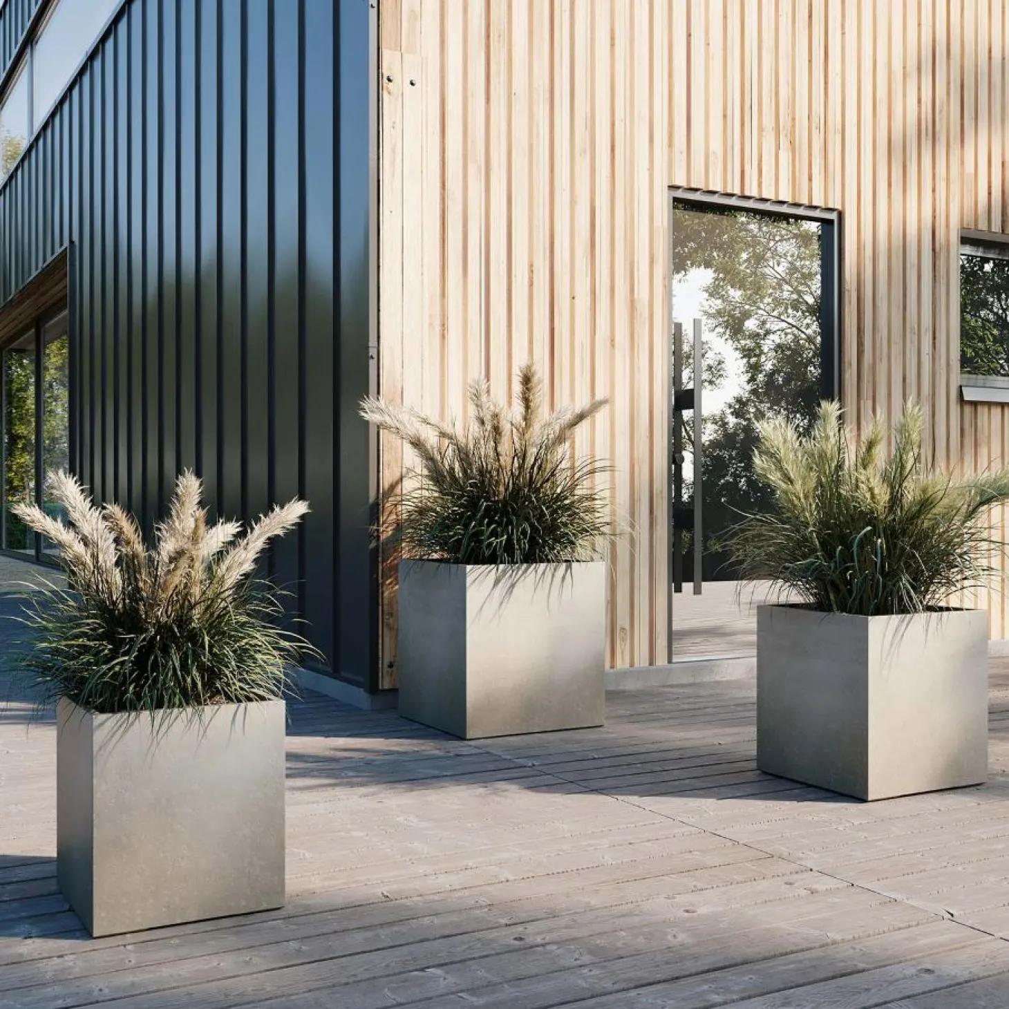 obust, elegant und vielseitig: Der Roccastone würfelförmige Betonpflanzkübel von Fleur Ami