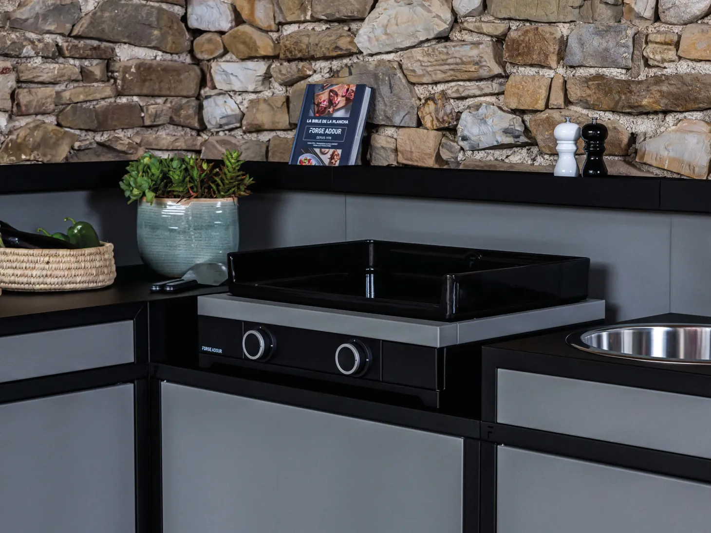 Wenn Sie Ihrer Außenküche einen Hauch von Klasse verleihen wollen, dann brauchen Sie ein Eckmodul. Mit dieser stilvollen Ergänzung können Sie Ihre Küche in eine rechte oder linke Ecke verwandeln, je nach Bedarf. Das elegante Stahldesign passt perfekt in jeden Außenbereich, und die schwarz-graue Farbgebung ergänzt jedes Dekor. Mit diesem praktischen Modul können Sie den perfekten Platz zum Kochen im Freien schaffen, um Gäste zu bewirten oder Zeit mit der Familie zu verbringen. Warten Sie also nicht länger und bestellen Sie Ihr Eckmodul noch heute!