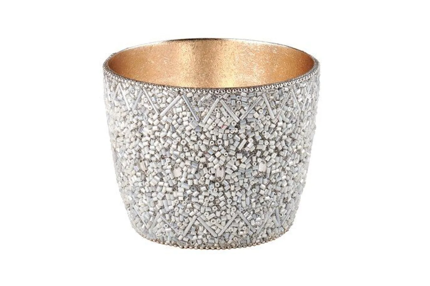 Erwecken Sie die Magie des Kerzenlichts mit dem zauberhaften Windlicht „Madras“ von Gift Company. Dieses elegante Stück vereint handwerkliches Können und zeitlose Eleganz und wird zum strahlenden Mittelpunkt Ihrer Raumgestaltung.