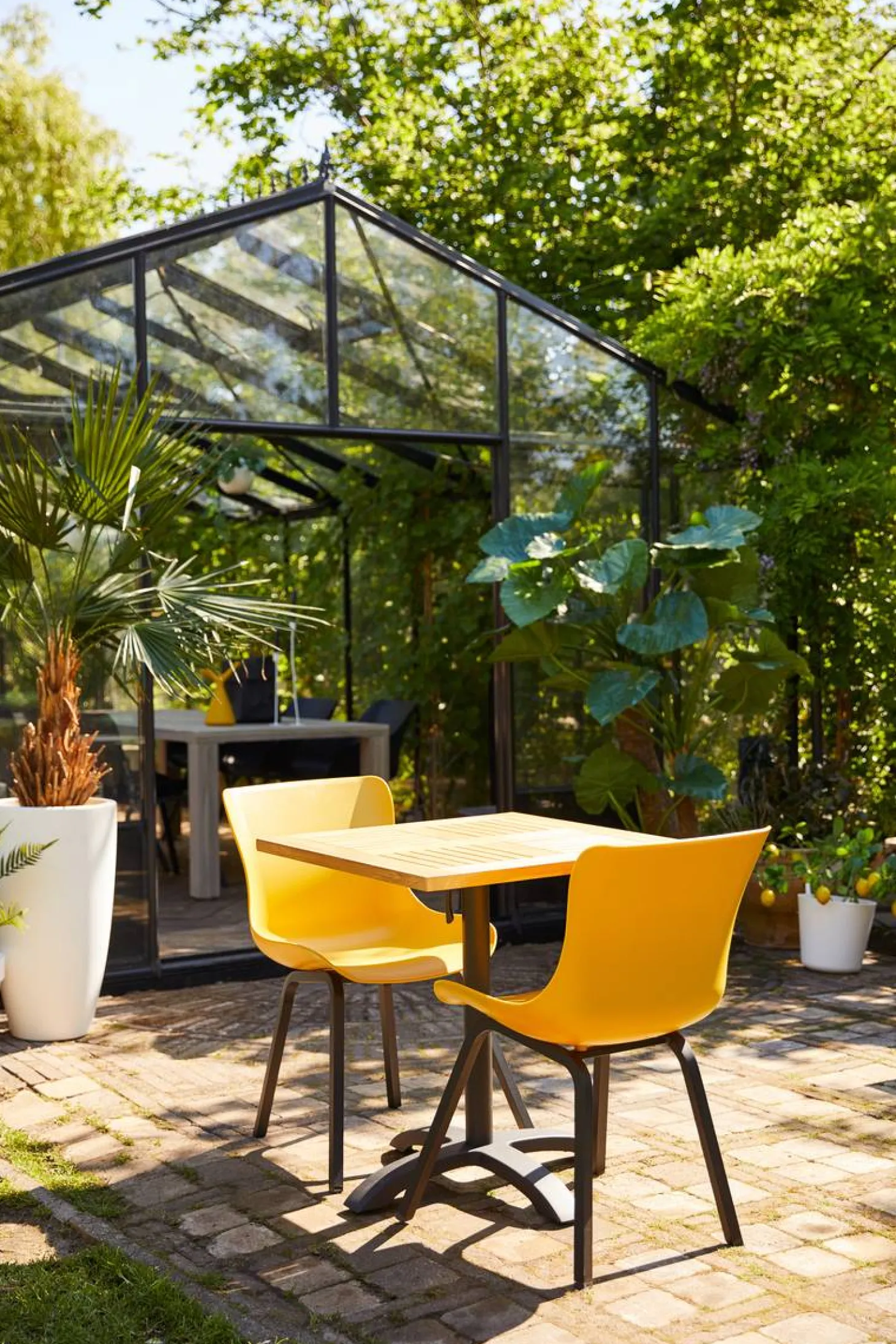 Der Sophie Teak Bistrotisch 70 × 70 cm von Hartman passt überall hin und nimmt nicht viel Platz weg.