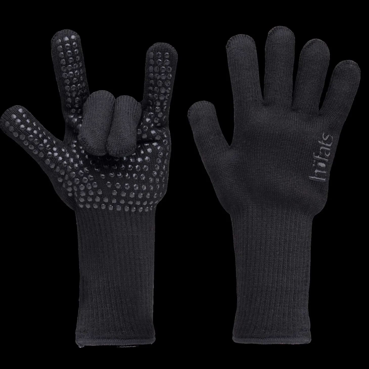 Die Feuerhandschuhe aus Aramid Schwarz von höfats sind ein absolutes Multitalent. Sie bieten Ihnen den idealen Schutz, wenn es darum geht, mit heißen Gegenständen umzugehen. Das temperaturbeständige Aramidfaser ist angenehm anschmiegsam wie eine zweite Haut und bietet dennoch einen hitzebeständigen Schutz bis zu 500° C. Der lange Unterarmschutz mit einer Länge von 13 cm hilft Ihnen, sich vor hohen Temperaturen zu schützen. Durch die hitzebeständigen Silikonnoppen an der Handfläche geben Ihnen einen sicheren Halt, selbst für sehr filigrane Gegenstände. Dank der Baumwollschlaufe lässt sich der Handschuh nach Benutzung auch einfach und sicher aufbewahren.