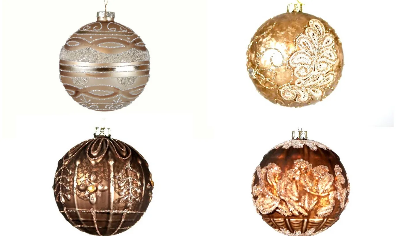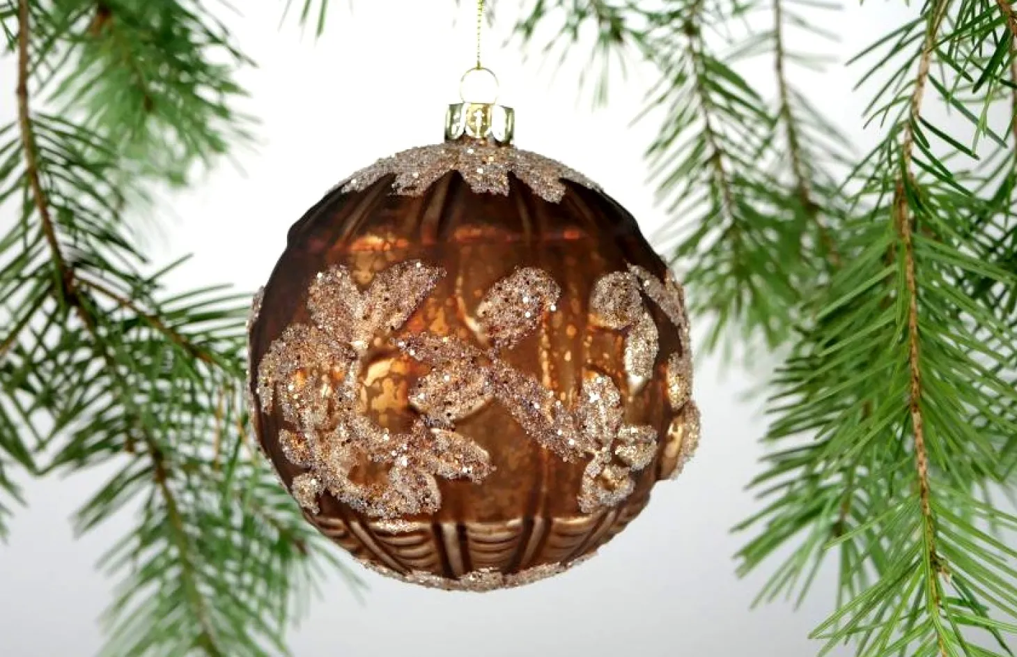 Produktinformationen „Glaskugel Ø 10 cm Braun Blätter Glitzer“
