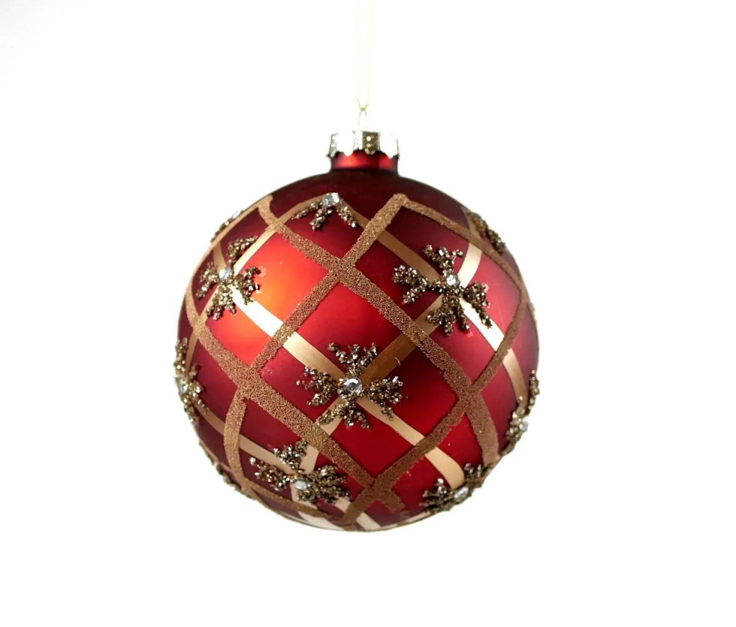 Produktinformationen „Glaskugel Ø 10 cm Rot Rot Streifen Gold“
