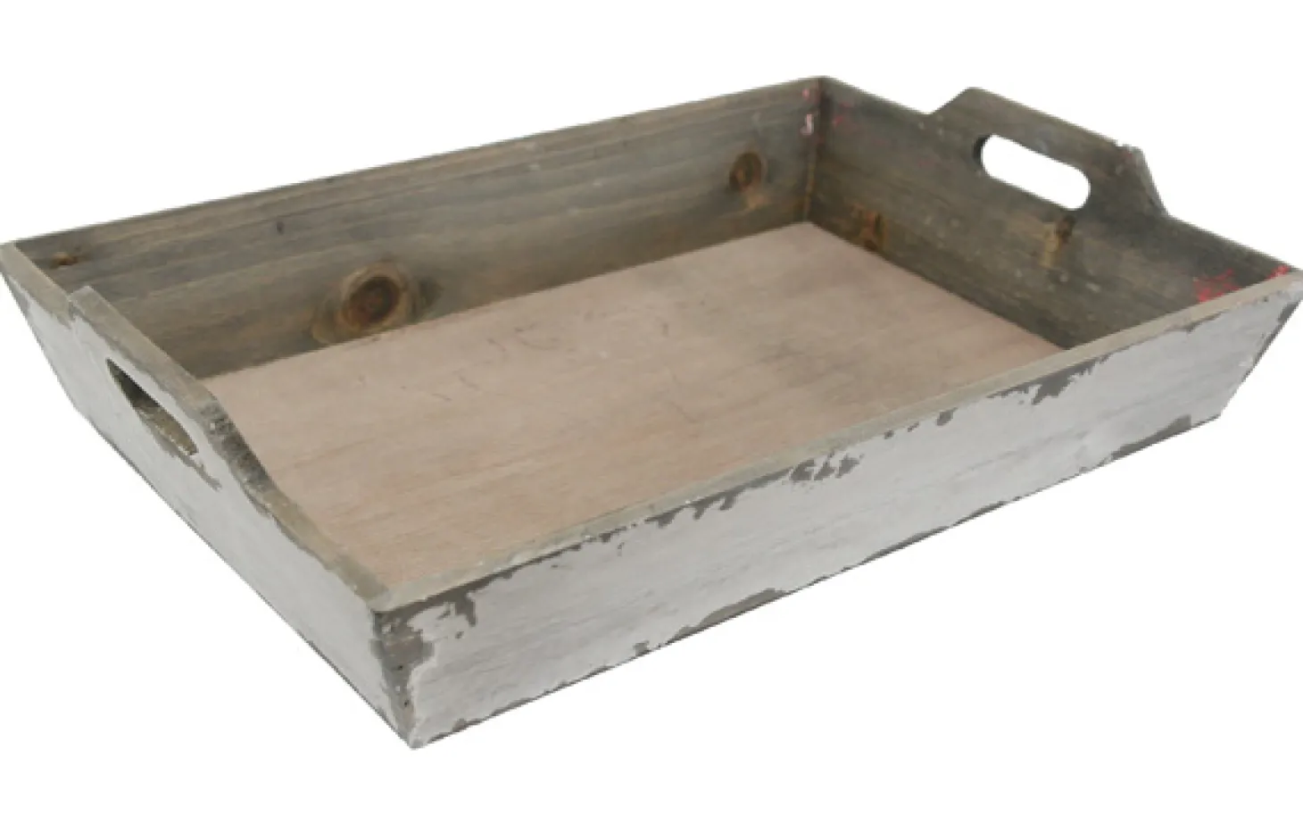 Produktinformationen „Holztablett mit Patina Antikweiß“