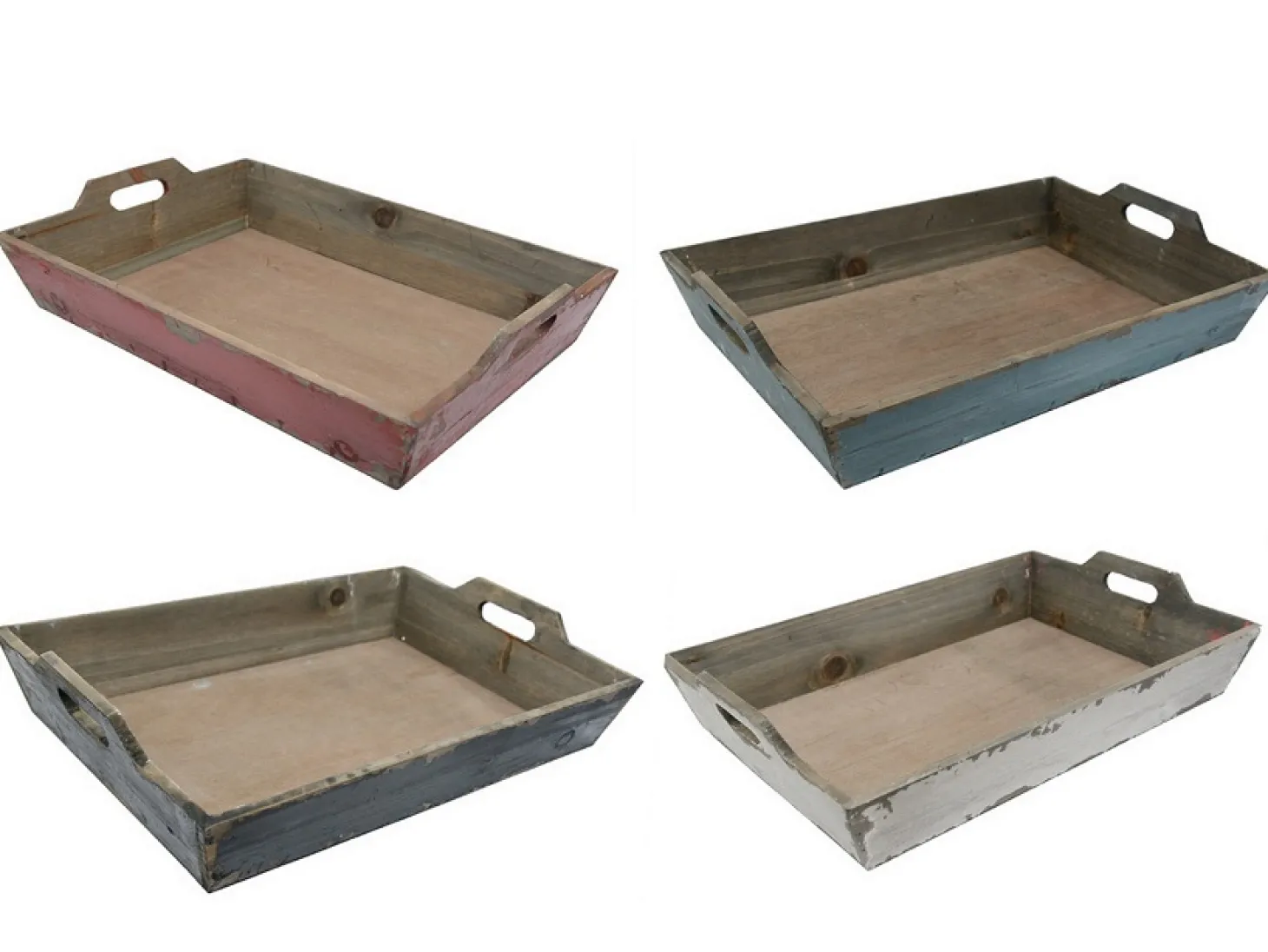 Dieses Holztablett mit Patina besticht durch sein zeitloses Design und ist vielseitig einsetzbar. Nutzen Sie es, um Speisen zu servieren oder als Dekotablett und wählen Sie aus den Farben Antikschwarz, Antikweiß, Antikrot und Antikblau.