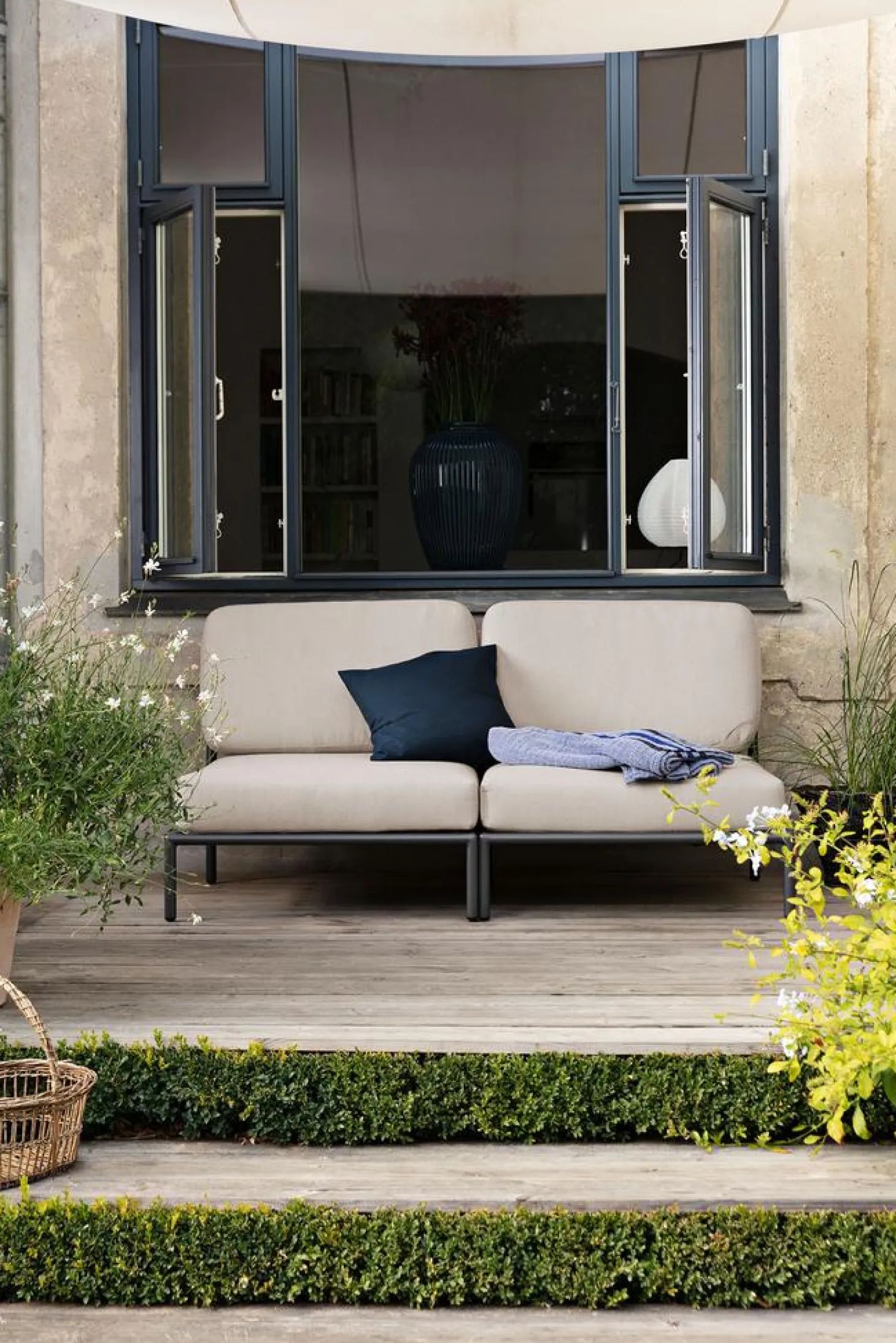 Der LEVEL Outdoor Lounge-Sessel Modul 1 von HOUE bietet Ihnen den perfekten Mix aus Stil und Komfort. Mit einem pulverbeschichteten Aluminiumgestell in zwei verschiedenen Farben und 13 verschiedenen Polsterfarben, können Sie diesen Sessel genau nach Ihren Wünschen gestalten. Das leichte, aber robuste Gestell und die großen, weichen Kissen schaffen eine harmonische Verbindung von Eleganz und Bequemlichkeit. Dank der hochwertigen Materialien ist der Sessel perfekt für den Einsatz im Freien geeignet – langlebig, wetterbeständig und leicht zu reinigen. Die LEVEL Kollektion von HOUE bietet eine Vielzahl von modularen Elementen, die Ihnen ermöglichen, Ihre ganz persönliche Outdoor-Lounge zu gestalten. Neben dem Lounge-Sessel gibt es zwei Sofamodule (rechts und links), eine Ottomane, eine Chaiselongue, ein großes Eckmodul, einen Couchtisch und einen Beistelltisch. Diese Flexibilität erlaubt es Ihnen, Ihre Terrasse oder Ihren Garten genau nach Ihren Bedürfnissen und Vorlieben zu gestalten. Die Kombination der Module sorgt für eine einladende Atmosphäre, die zum Entspannen und Genießen einlädt. Ein Highlight des Outdoor Lounge-Sessels LEVEL sind die Kissen aus Sunbrella Heritage-Stoff. Diese Kissen sind nicht nur äußerst bequem, sondern auch wasser- und schmutzabweisend, pflegeleicht und Oeko-Tex zertifiziert. Der natürliche Look mit Vintage-Charme verleiht Ihrer Outdoor-Lounge eine besondere Note und macht sie zu einem echten Hingucker. Genießen Sie unbeschwerte Stunden mit Familie und Freunden auf Ihrer neuen, hochwertigen und stilvollen Gartenmöbel-Kollektion.