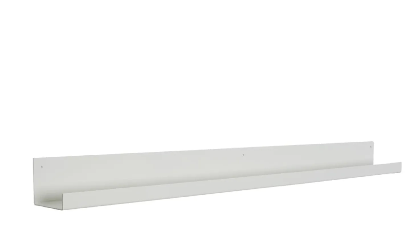 Die Care Bilderleiste/Wandregal Large Hellgrau von Hübsch ist die ideale Lösung, um Ihre Lieblingsbücher, Drucke auf Papier und Erinnerungsstücke stilvoll zu präsentieren. Hergestellt aus hochwertigem Eisen in einem sanften hellgrauen Farbton, fügt sich dieses Regal nahtlos in jede moderne oder industrielle Einrichtung ein.