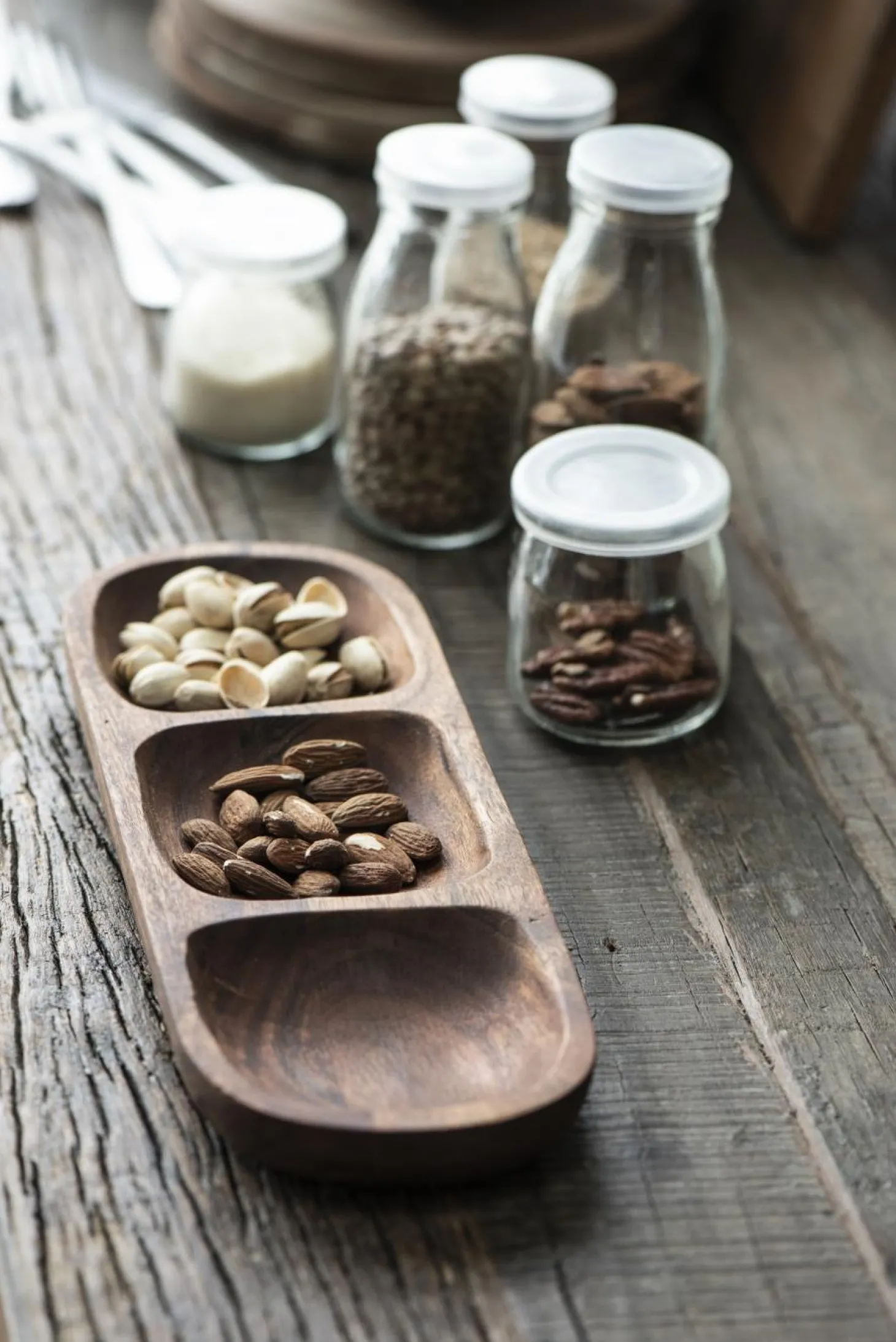 Die Dipschale mit 3 Fächern aus geöltem Akazienholz von IB Laursen ist die perfekte Möglichkeit um mehrere Snacks gleichzeitig zu servieren. Egal ob Abends auf dem Sofa oder beim gemeinsamen Kaffee am Nachmittag, in der Snackschale aus Akazienholz werden Ihre Speisen in jedem Fall optimal in Szene gesetzt. Das verwendete Akazienholz hat einen warmen braun Ton mit wunderschönen Maserungen, die bei jeder Anti-Pasti Schale einzigartig sind. Das Tablett eignet sich außerdem als Tapasschale, um verschieden Saucen, Gemüse oder Käse hineinzugeben.