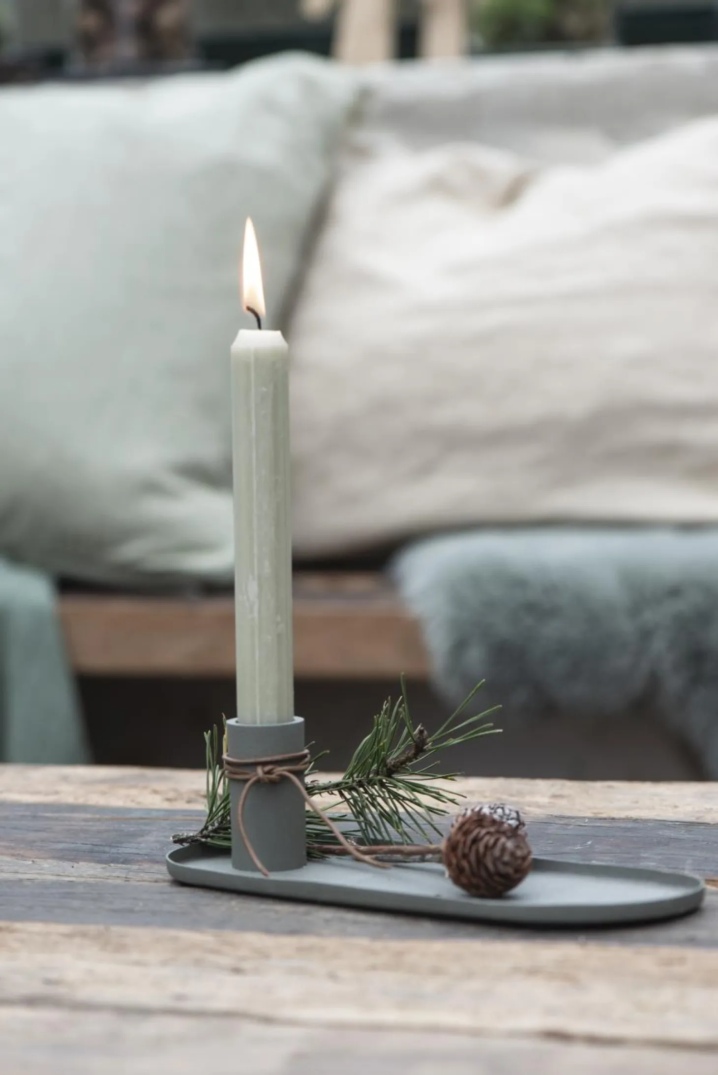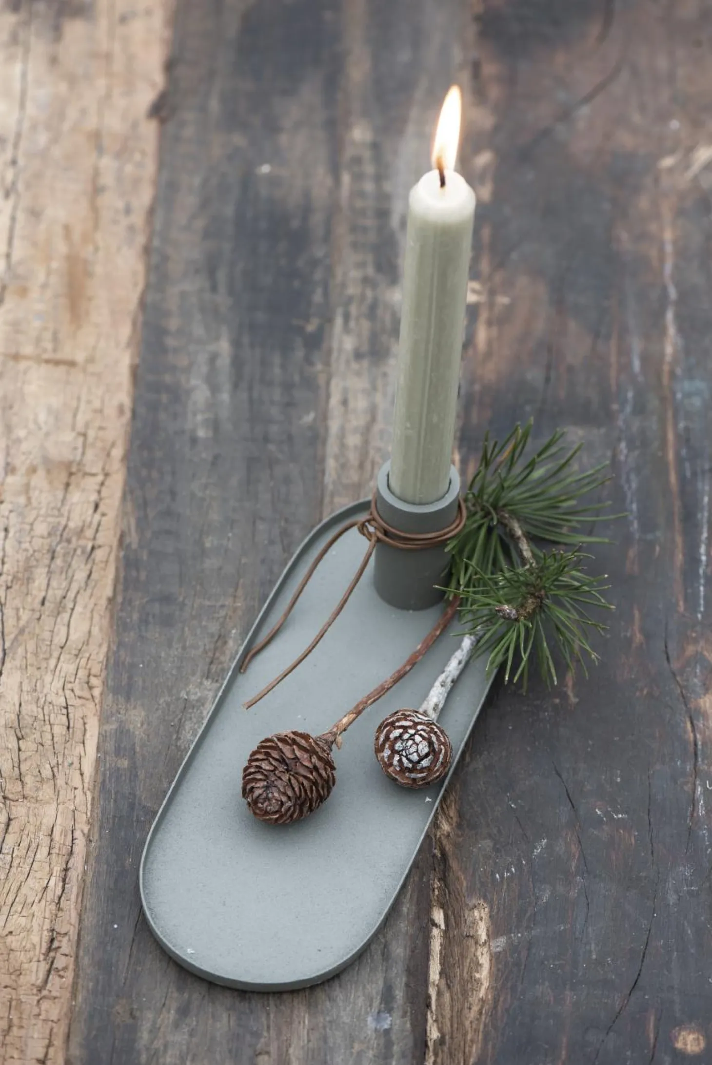 Produktinformationen „Kerzenhalter für Stabkerze mit Tablett staubig grün“