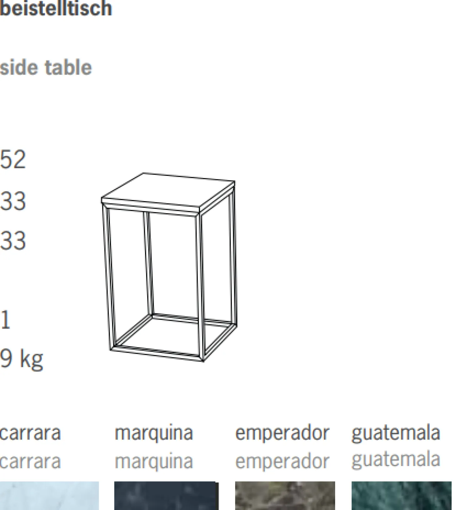 Abbildung zeigt Platte Marquina / Gestell Edelstahl