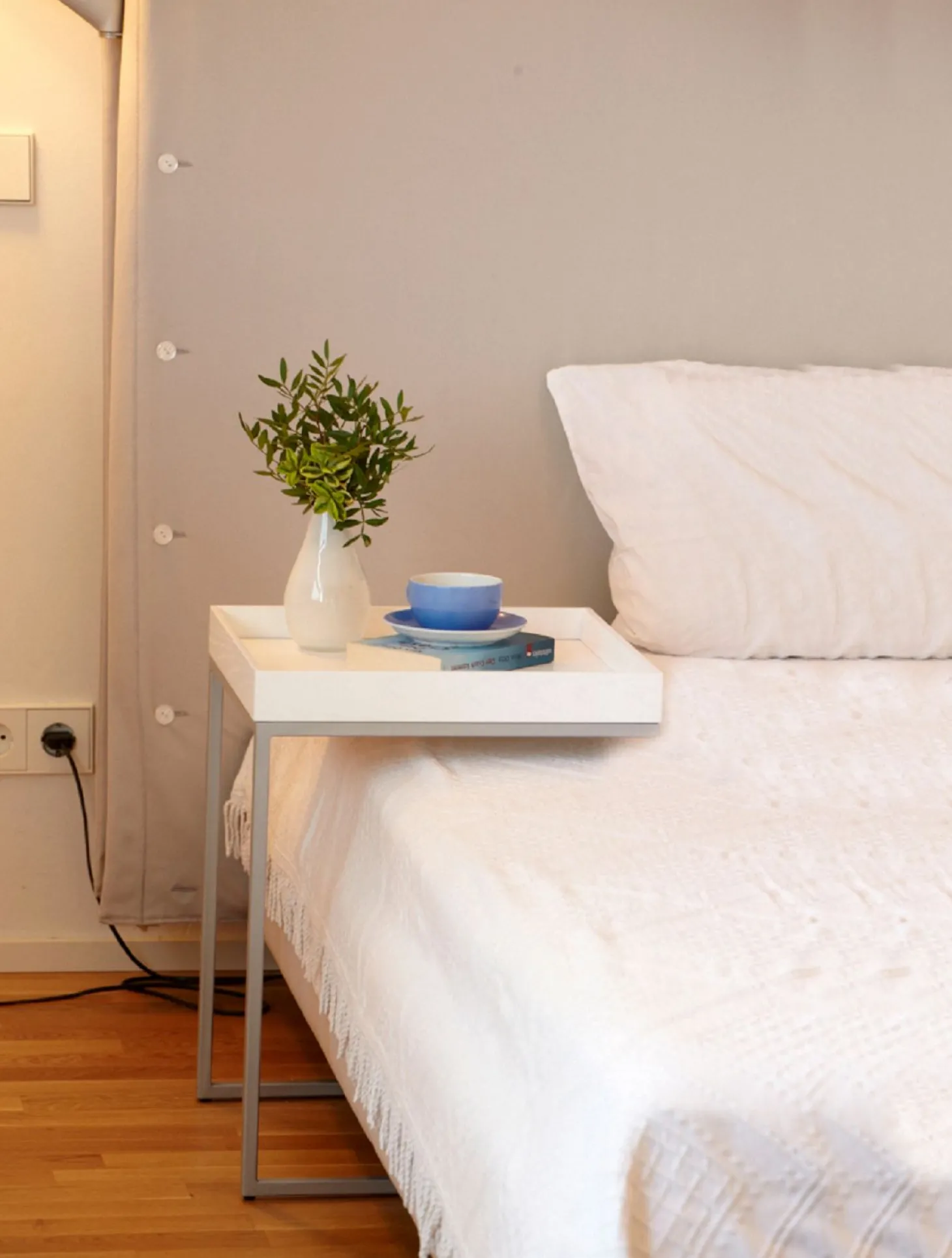 Der Beistelltisch Pizzo U-Form von Jan Kurtz lässt sich dank des ausgeklügelten Designs an und über ein Sofa oder ein Bett schieben. So haben Sie alle wichtigen Gegenstände immer griffbereit. Der Tisch ist trotzdem stabil und belastbar. Das abnehmbare Tablett ermöglicht Ihnen zusätzlichen Komfort und ist ein nützlicher Gegenstand im Alltag. Die Reinigung gestaltet sich ebenfalls sehr einfach. Wählen Sie zwischen einem Gestell in Edelstahl oder einem pulverbeschichteten Gestell in weiß, schwarz, lunasilber. Das Tablett ist in vier verschiedenen Farben verfügbar.
