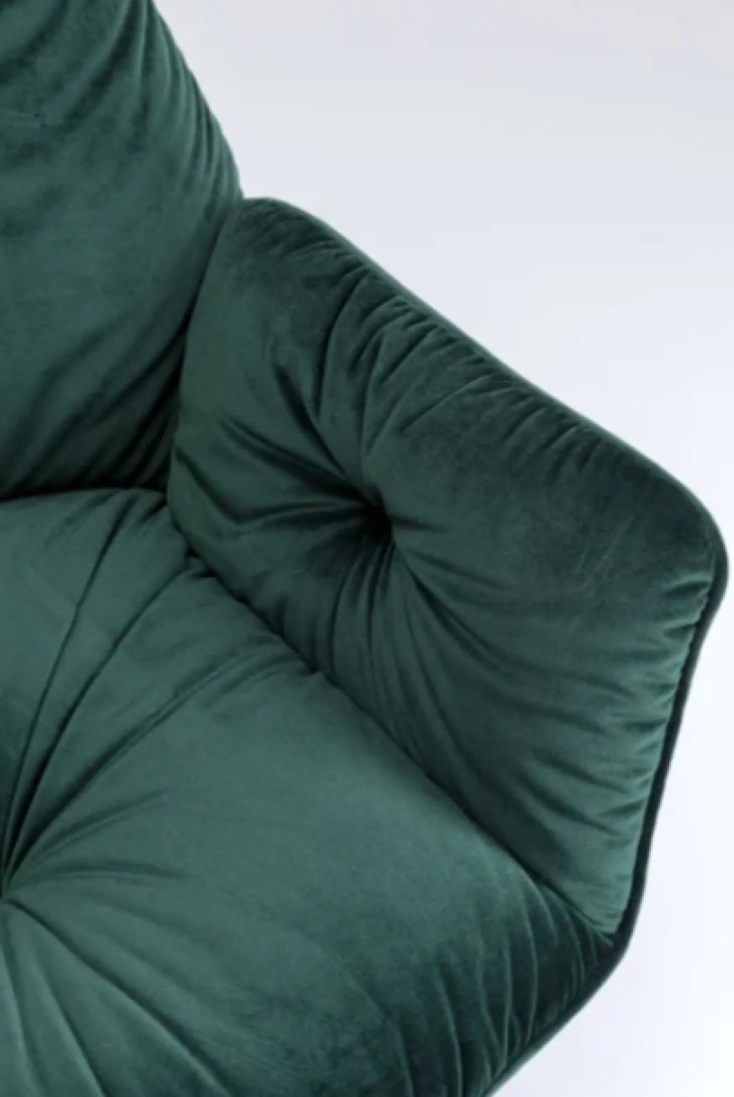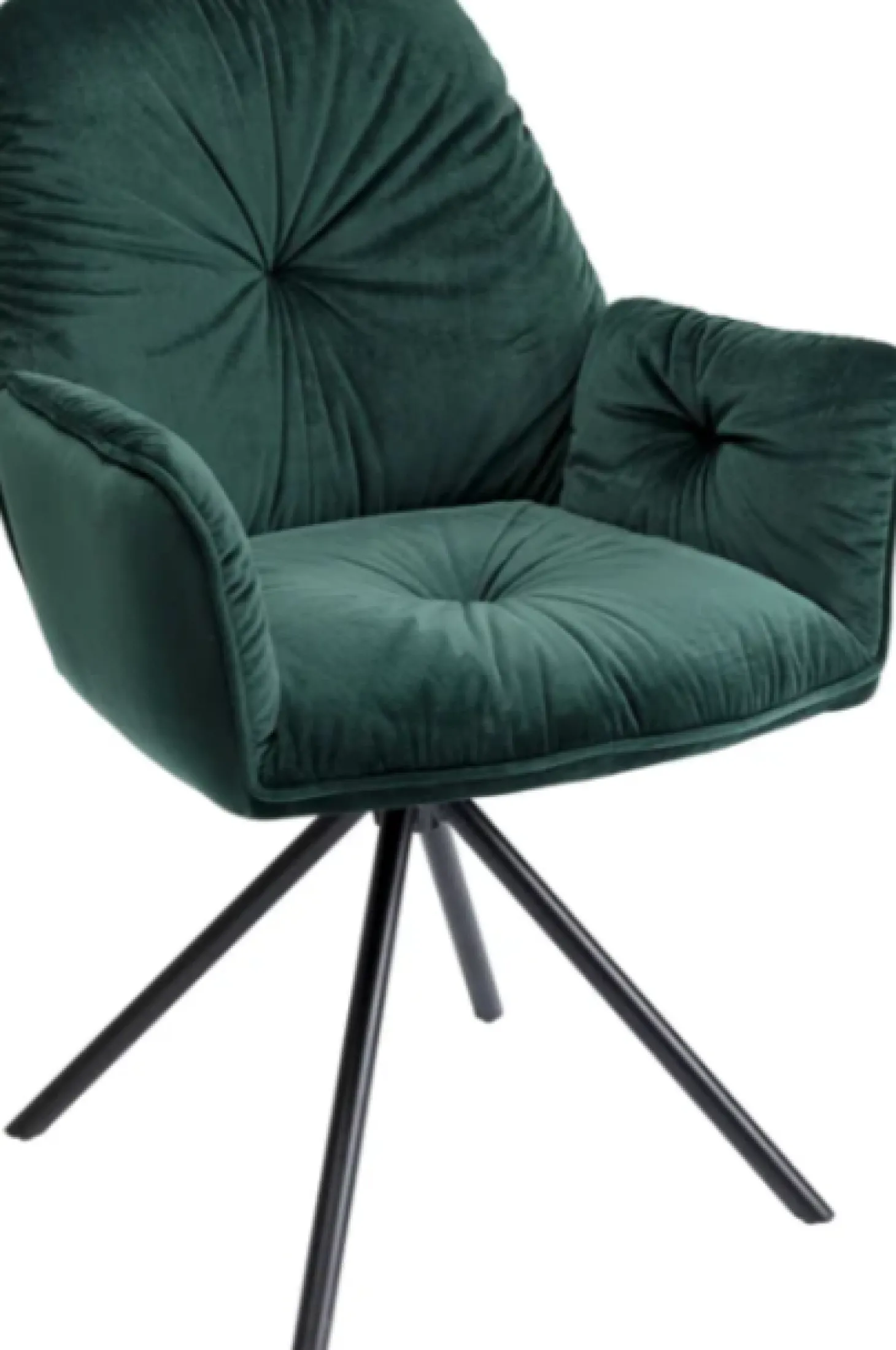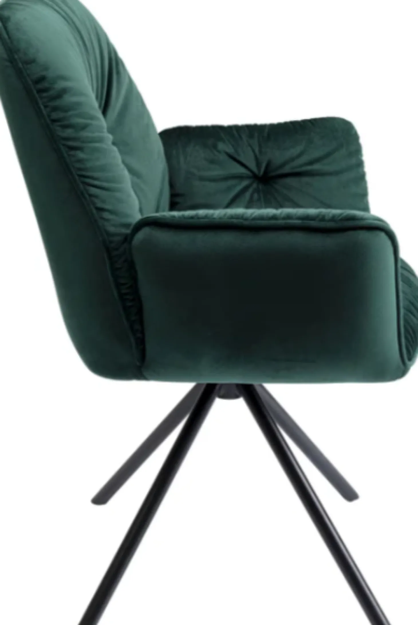 Der dunkelgrüne Mila Armlehnstuhl vereint Komfort und stilvolles Design in einem. Mit seiner Drehfunktion und den weich gepolsterten Armlehnen ist dieser Polsterstuhl der perfekte Begleiter für gemütliche Abende am Esstisch oder als stilvolle Ergänzung im Wohnbereich.