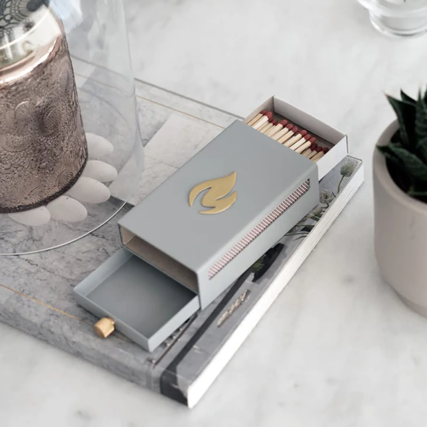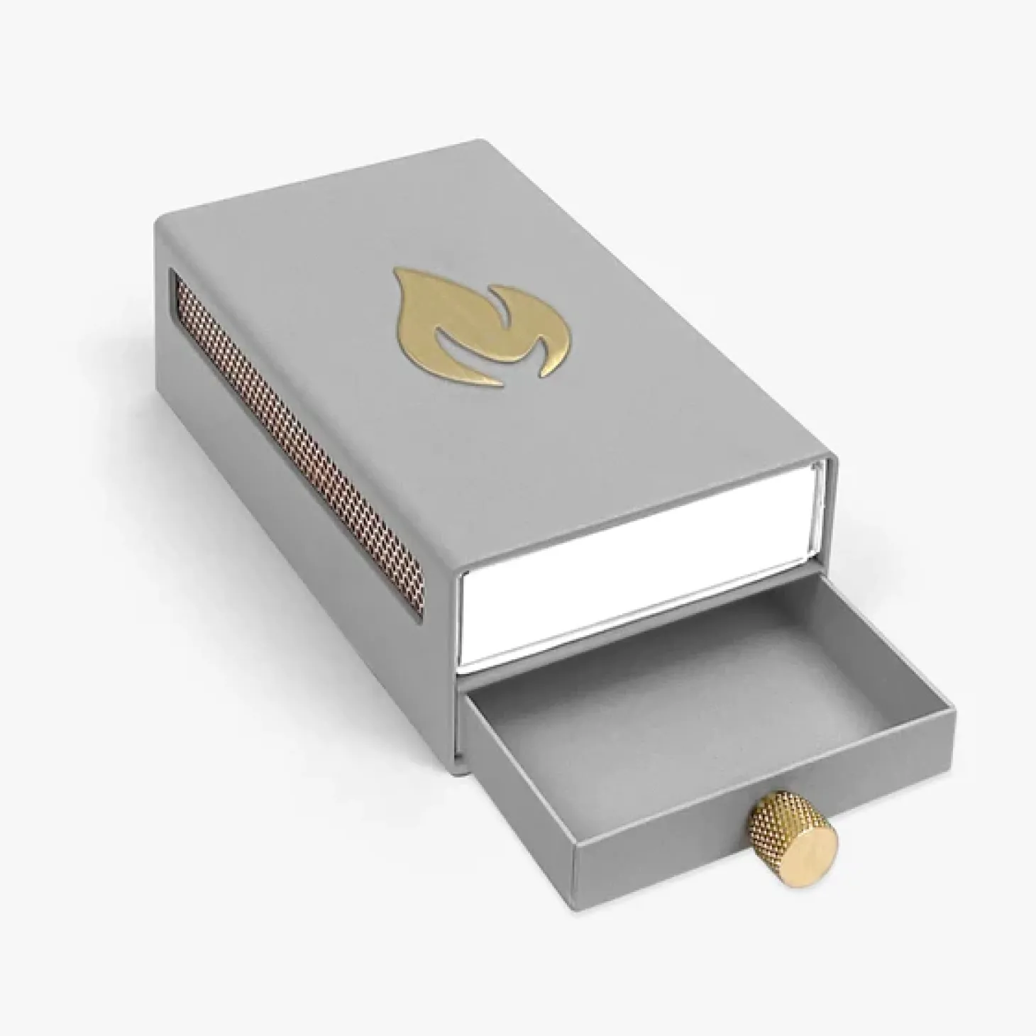 Lassen Sie Nordic Flame Ihre Fantasie mit dieser eleganten Streichholzschachtelabdeckung Grau beflügeln! Zeigen Sie einen Hauch von Raffinesse mit seiner pulverbeschichteten, mattgrauen Oberfläche und den Messingakzenten. Diese Streichholz-Schachtel Hülle wurde so gestaltet, dass sie beeindruckt und jedem Zuhause einen Hauch von Klasse verleiht. Ästhetisch ansprechend und praktisch zugleich, bewahrt dieses einzigartige Stück bis zu 50 lange Streichhölzer sicher und bequem auf und schützt sie. Ca. 50 lange Streichhölzer sind im Lieferumfang enthalten. Und da sich der Deckel von beiden Seiten öffnen lässt, müssen Sie nicht mehr umständlich nach einem Licht suchen – schieben Sie ihn einfach auf und los geht’s!