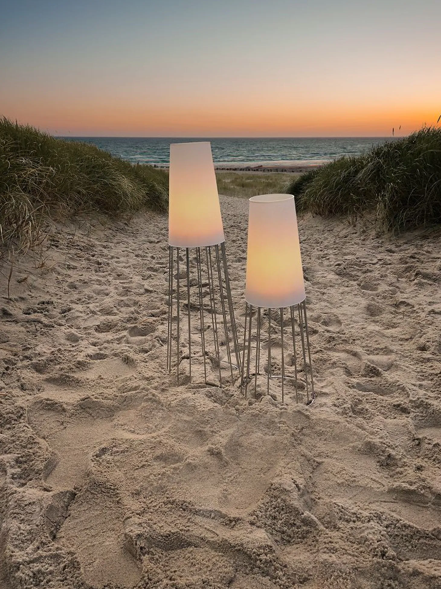 Das Lighthouse Outdoor-Windlicht von Philippi ist in seiner Form an einen Leuchtturm angelehnt. Das in zwei Größen erhältliche Gartenlicht besteht aus einem verchromten Stahlgestell und einem weißen Glas. Stellen Sie in die Gartenwindlichter Teelichter oder passende Blockkerze und sorgen Sie am Abend für eine stimmungsvolle Atmosphäre.