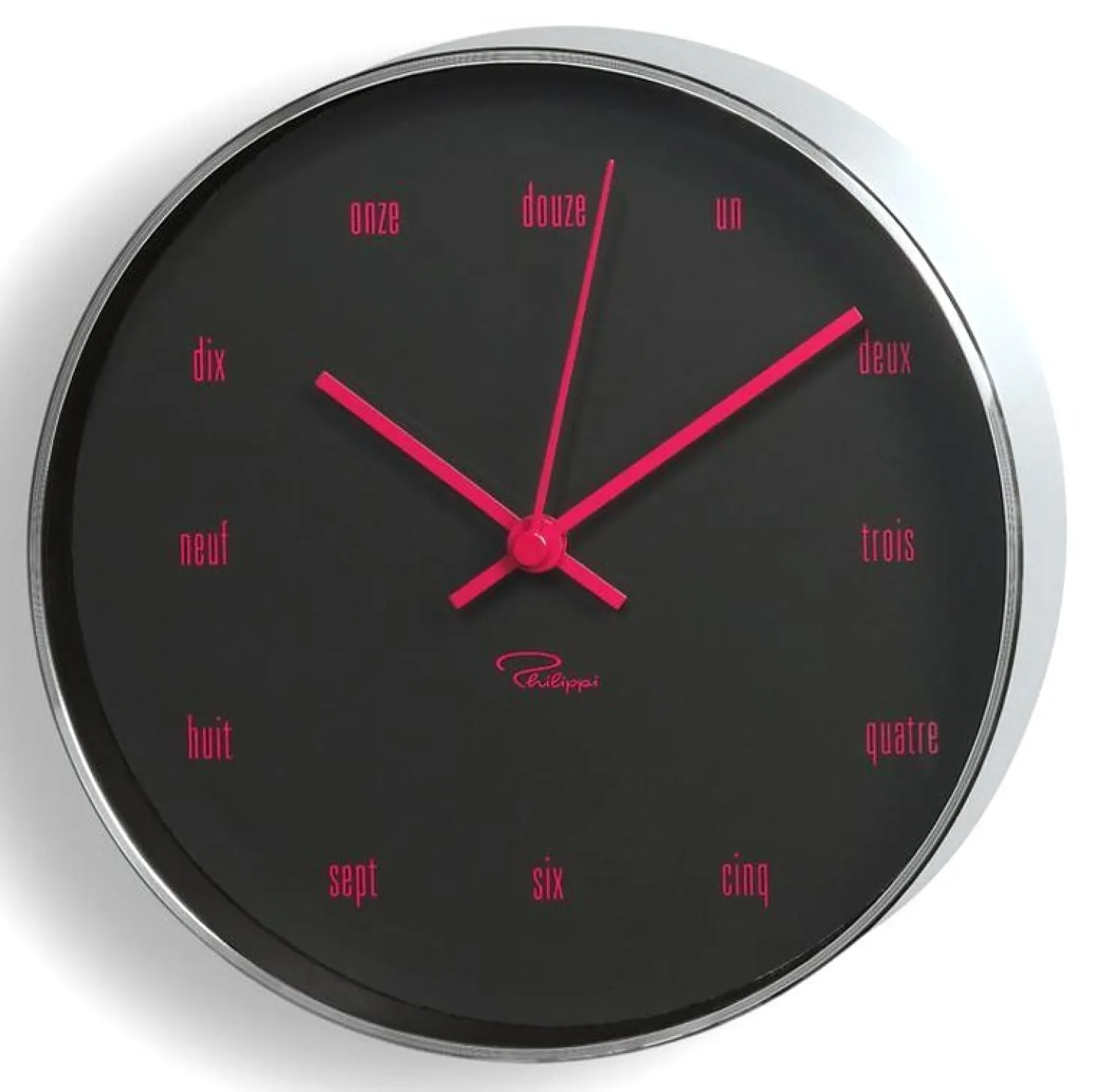 Die französische Ausführung der Wanduhr Tempus zeigt Ihnen vielleicht nicht gleich zu wann Ihre Baguettes im Ofen fertig sind, dennoch aber die genaue Uhrzeit so dass Sie immer pünktlich an Ort und Stelle erscheinen. Irgendwie flippig, trendig und dennoch flexibel einsetzbar – Das ist die Uhr zur Wandmontage von Philippi in rötlichem und schwarzem Farbton. Eines ist Ihnen mit dieser Wanduhr sicher. Sie gönnen sich etwas ausgefallenes und einen Blickfang der jeder der Blicke Ihrer Gäst einfängt.