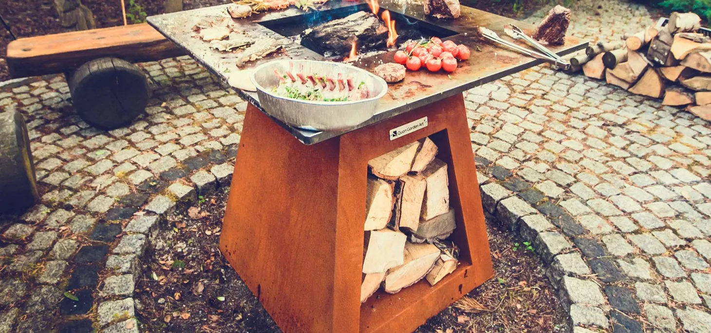 Für einfache und effiziente Nutzung haben sich die Hersteller der Grillschale etwas Besonderes ausgedacht, denn die Struktur erlaubt es einen regulierbaren Luftstrom zu erschaffen, der durch in das Gestell integrierte Abzug-schächte fließt und somit diverse Vorteile bietet. Beispielweise ermöglicht man so schnelles Angehen des Feuerholzes, weniger Rauch wird erzeugt und die Wände können besser abkühlen. Falls wir Ihr Interesse wecken konnten, Sie sich aber noch nicht sicher sind ob Größe oder Model das Richtige für Sie ist dann lassen Sie sich bei unseren anderen Grillschalen von Quan Garden Art inspirieren.