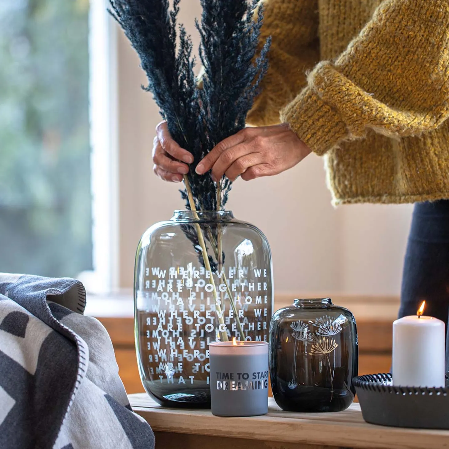 Produktinformationen „Glasvase „wherever we are“ Höhe 27cm Ø19,5, grau“