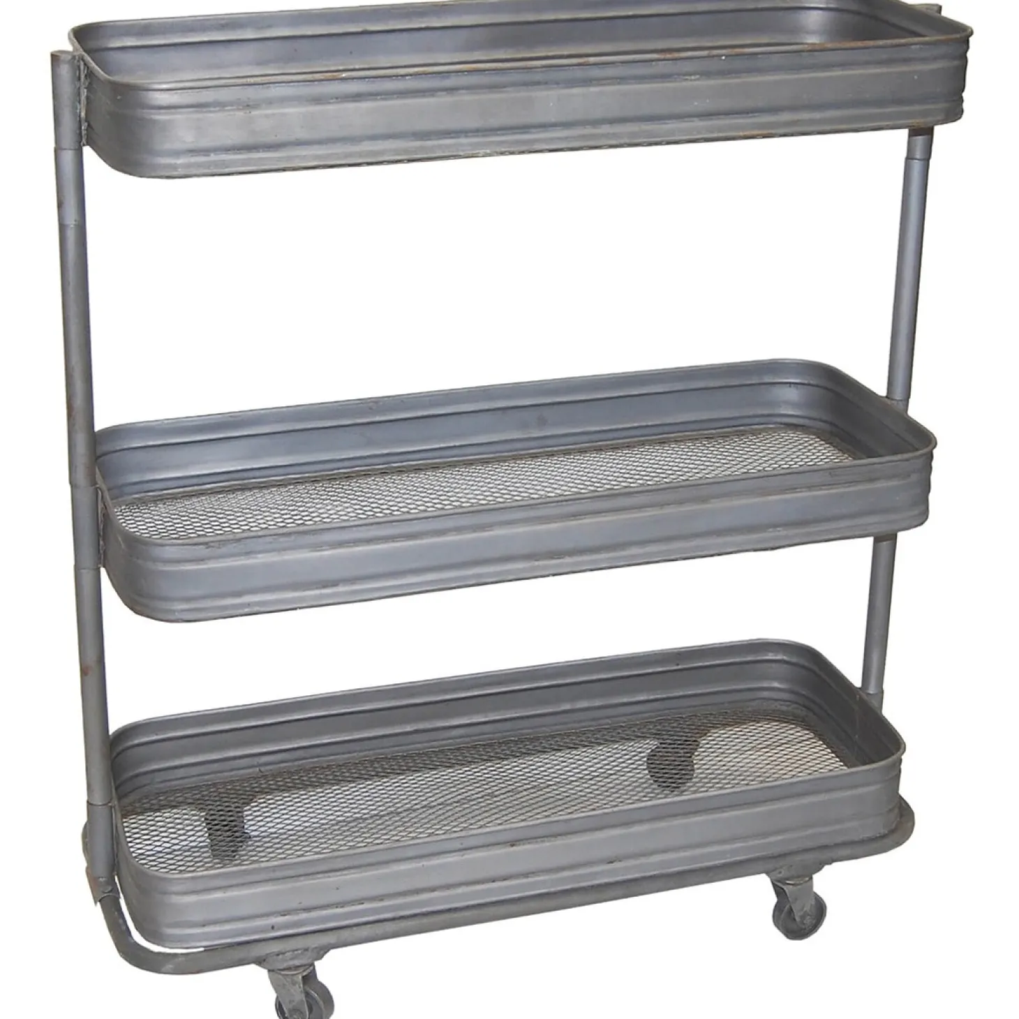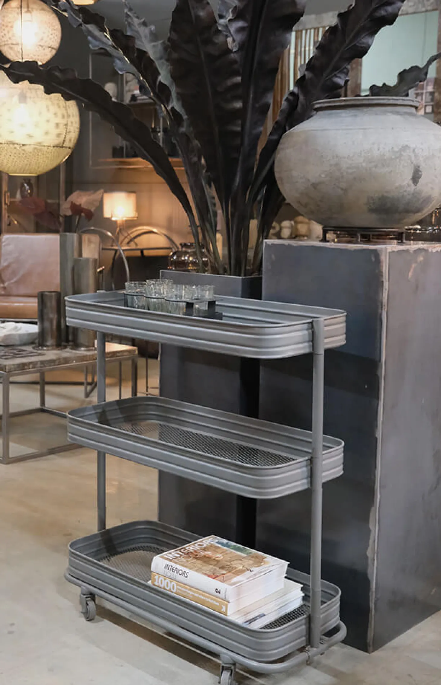 Der Vega Eisenrollwagen- Zink von Trademark Living ist ein dekoratives Möbelstück im Industriestil und ideal für viele verschiedene Zwecke. Sie können beispielsweise Getränke in Ihrem Wohnzimmer servieren, Badaccessoires wie Handtücher aufbewahren oder ihn sogar im Büro für Schreibtischbedarf und Organisationszwecke verwenden. Mit seinen drei geräumigen Fächern bietet er genau die richtige Menge an Stauraum für alles, was Sie brauchen. Und mit seinem modernen Industrielook verleiht er Ihrem Zuhause oder Büro ein stylisches Ambiente. Egal, ob Sie einen hilfreichen Wagen auf Rädern für den täglichen Bedarf oder eine dekorativ gestaltete Aufbewahrungslösung benötigen, der Vega Eisenwagen ist Ihre perfekte Wahl.