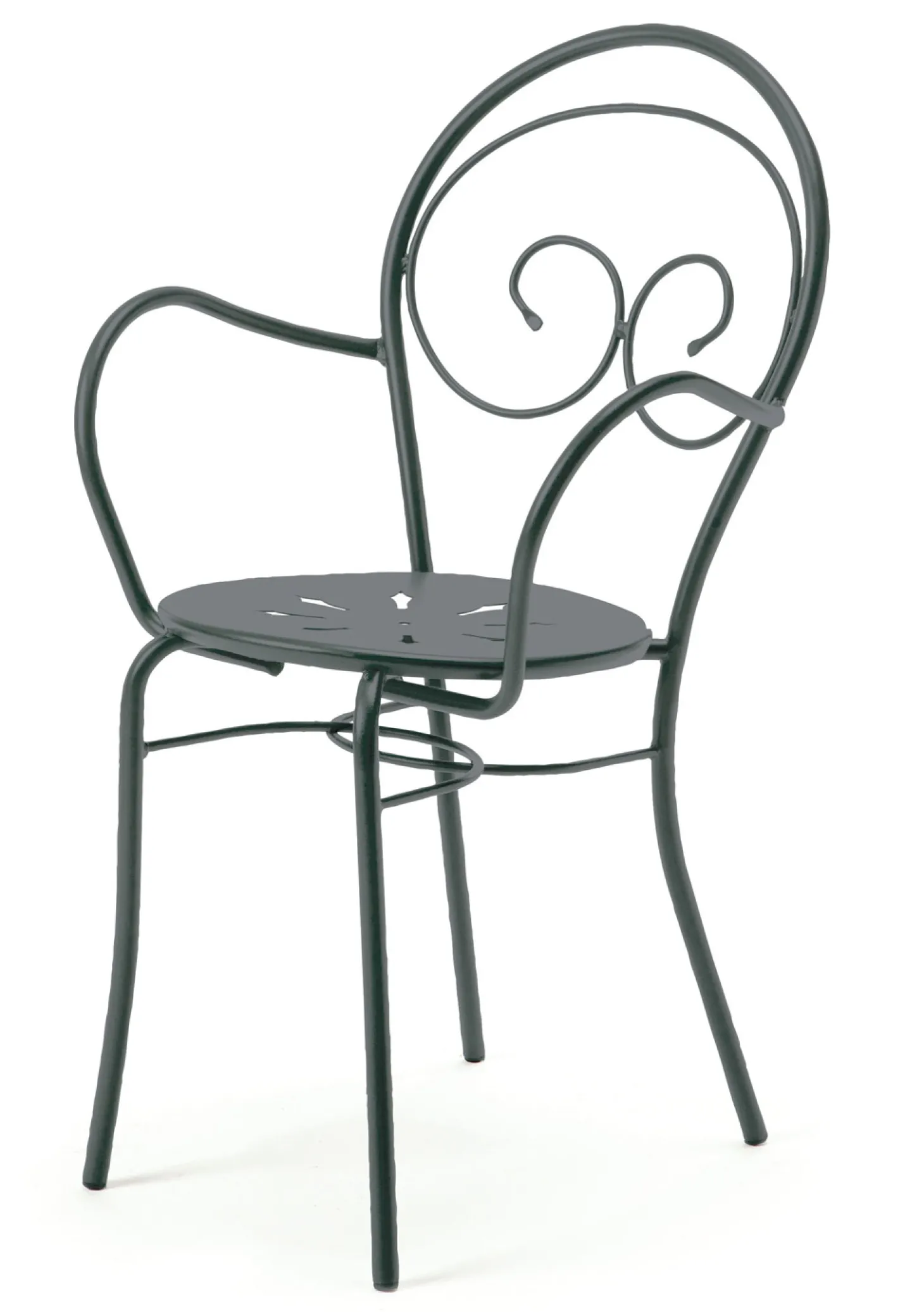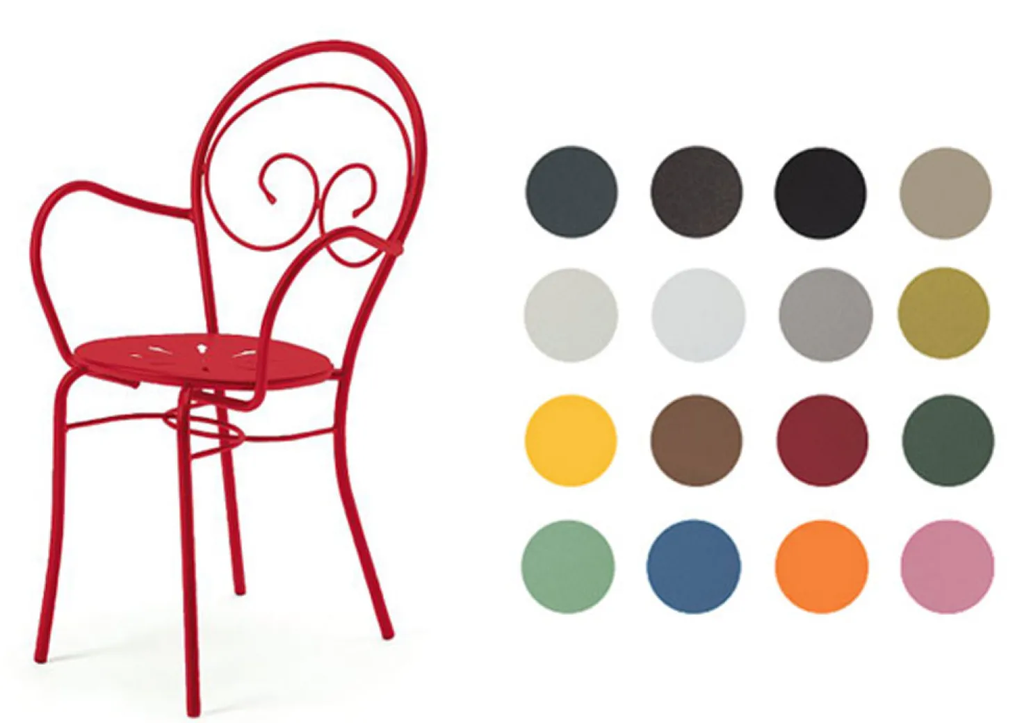 Der Sessel im Landhausstil Mimmo von Vermobil ist durch sein verspieltes Metallgestell ein echter Hingucker. An dem Gartenstuhl mit Armlehnen finden sich viele filigran gearbeitete Details, welche ihn äußerst besonders machen. Doch nicht nur das, die große Auswahl an schlichten und knalligen Farben spricht für sich. Aufgrund seiner galvanisch verzinkten Oberfläche ist der Metallstuhl optimal vor Rost und Witterungseinflüssen geschützt.