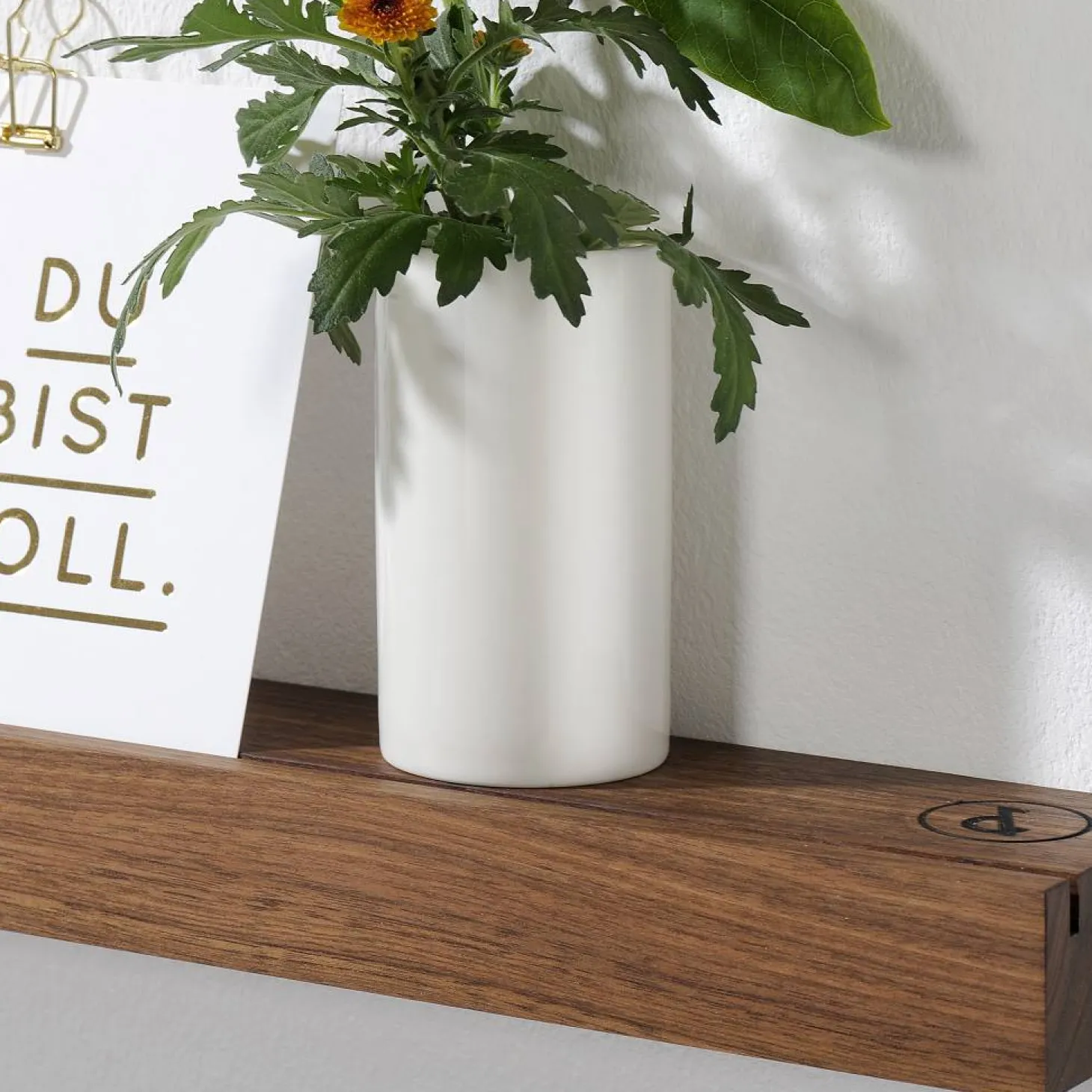 Der Wandspiegel mit Nussbaumholzablage 100 x 7,5 x 4 cm, Spiegel ∅ 50 cm von weld & co besteht aus einem Spiegel und einer Nussbaumleiste. Das Ablagebrett hat eine Fräsung, in der Sie den Spiegel ganz einfach einstecken können und dieser so perfekt in der Holzleiste hält. Die zierliche Ablage beseht aus dem Material geöltem, massivem Nussbaumholz und ist somit stabil und hochwertig. Der Spiegel hat einen Durchmesser von 50 cm und die Holzablage hat die Maße 100 x 7,5 x 4 cm. Funktion und schönes Design, das bietet Ihnen der Wandspiegel von weld & co, welcher sich für den Wohnbereich, Eingangsbereich und für das Schlafzimmer eignet. Ein besonderes Highlight des hochwertigen Spiegels ist, dass Sie in die Fräsung der Leiste, Bilder hineinstecken können und so Ihren Eingangsbereich mit schönen Erlebnissen und Erinnerungen gestalten können. Nicht nur im Wohnbereich ist der Wandspiegel mit Eichenbrett einsetzbar, gerne können das nützliche Produkt auch in Ihrem Bad als Wandaccessoire verwenden. Die Bilderleiste wird ganz leicht mit zwei Schrauben an der Wand befestigt, im Lieferumfang ist Befestigungsmaterial enthalten. Zur Reinigung der Leiste verwenden Sie bitte einen Staubwedel oder ein feuchtes Tuch und reinigen Sie diese nur mit milden Reinigern. Nasse Flecken sollten direkt entfernt werden. Bei uns im Shop erhalten Sie auch den Wandspiegel mit der Holzablage Eiche.