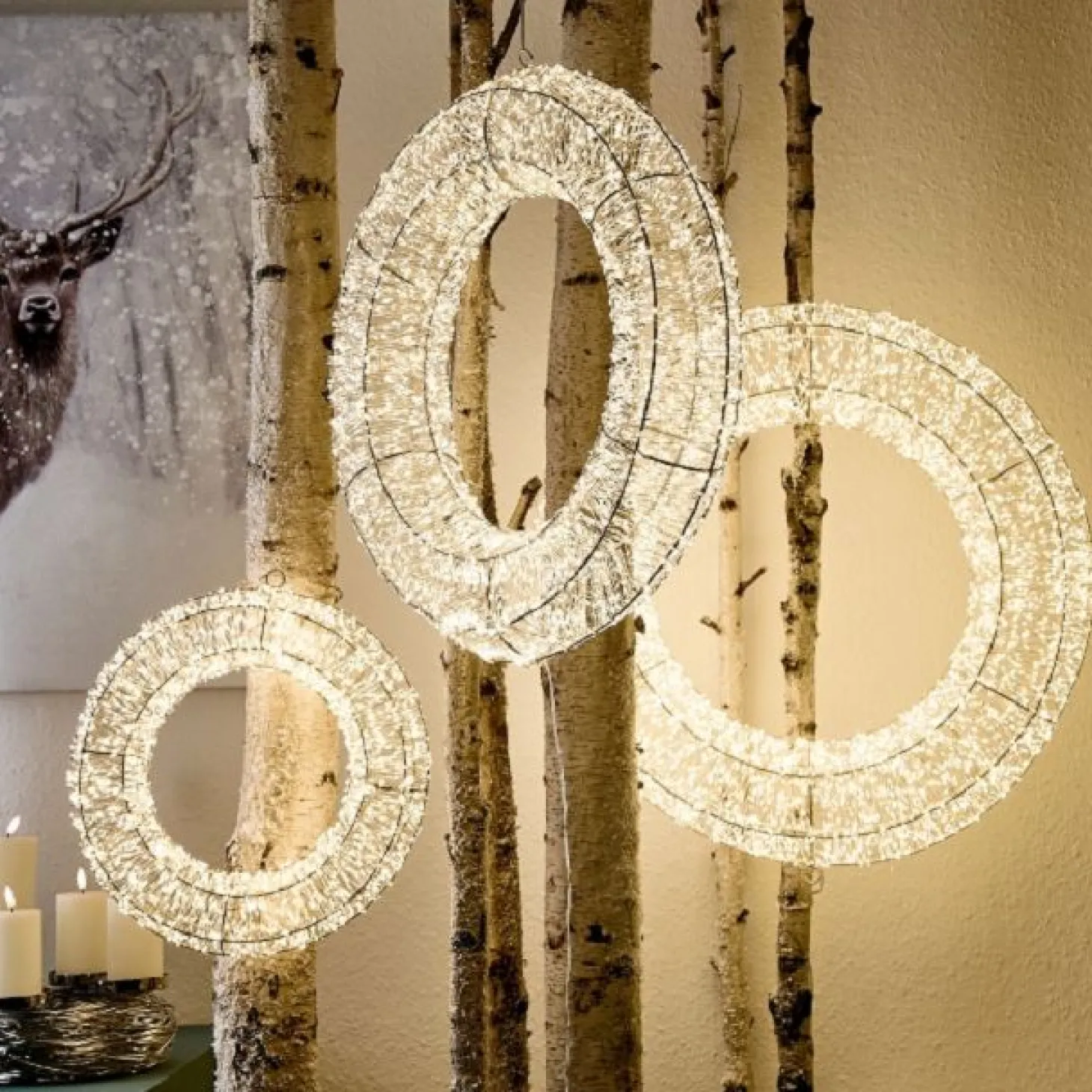 Wir stellen Ihnen den Werner Voß LED-Kranz Durchmesser 60 cm vor! Dieser leuchtende Kranz ist ideal, um Ihrem Zuhause einen Hauch von Weihnachtsstimmung zu verleihen. Er leuchtet wunderschön und wird mit einer Fernbedienung geliefert, die eine einfache Bedienung ermöglicht. Mit der Timerfunktion und der Dimmfunktion können Sie die Lichtstärke individuell einstellen und so die perfekte Atmosphäre für Ihr Weihnachtsfest schaffen. Der aus Metall gefertigte Kranz ist langlebig und wird Ihnen viele Feiertage lang erhalten bleiben. Der LED Kranz 60 cm von Werner Voß ist hervorragend geeignet zur Dekoration an Ihrer Tür oder zum Aufhängen an Ihrem Fenster. Ein Hingucker an Ihrem Fenster verschafft der Kranz auch für Außenstehende. Schaffen Sie eine warme und gemütliche Atmosphäre in Ihrem Zuhause in dieser Weihnachtszeit mit dem Werner Voß LED Kranz!