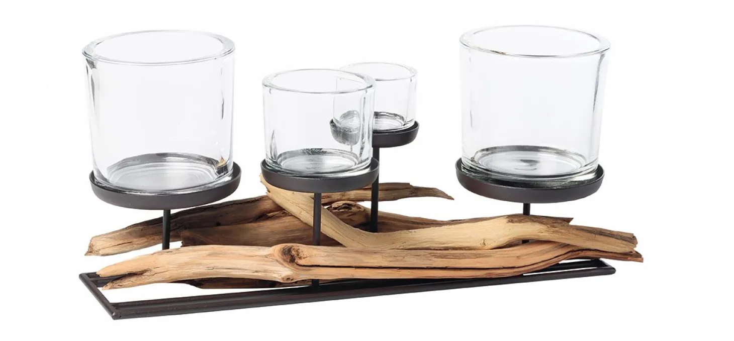 Dank der mitgelieferten Gläser lässt sich der Leuchter flexibel dekorieren – ob mit Teelichtern, Stumpenkerzen oder saisonalen Akzenten. Erhältlich ist der WMG Kerzenständer in vier Größenvarianten, die jeweils mit unterschiedlich großen Gläsern ausgestattet sind.