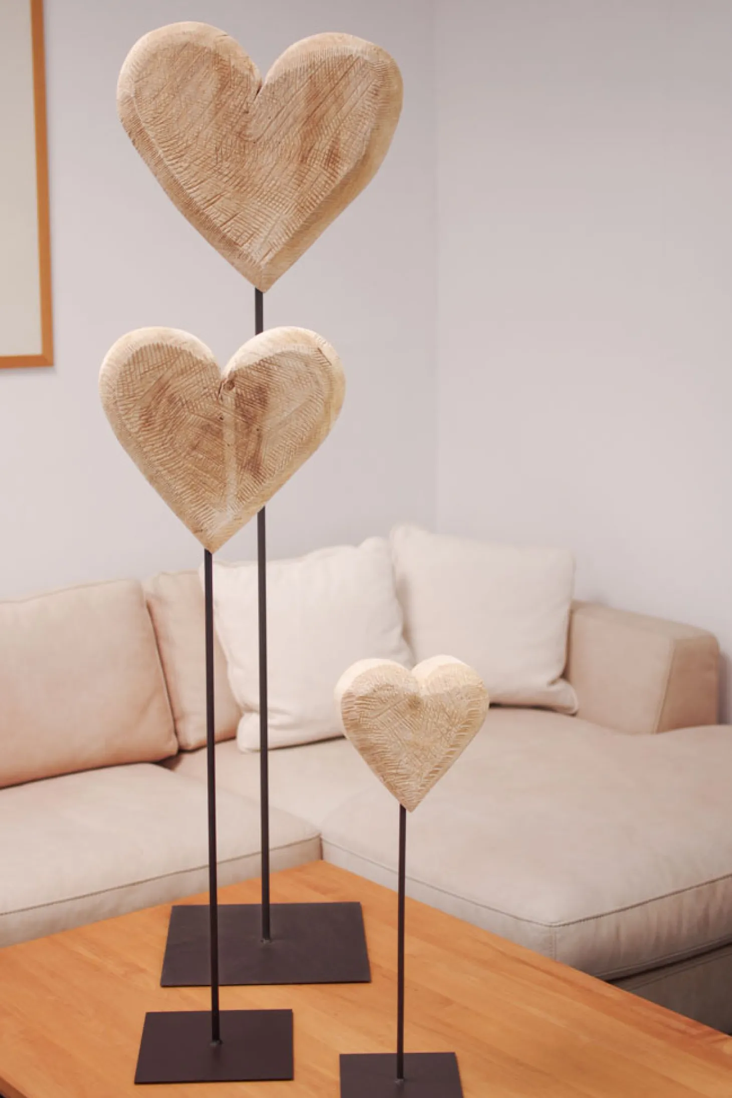 Mit dem Pappelherz Natur auf Eisenständer 130 cm von WMG erhalten Sie ein wohnliches Dekoelement, das Wärme und Natürlichkeit in Ihr Zuhause bringt. Jedes Naturherz ist ein handgefertigtes Unikat, da jedes einzelne Holzherz individuell mit der Säge bearbeitet wird. So entsteht ein einzigartiger Charakter, der Ihrem Wohnraum eine persönliche Note verleiht.