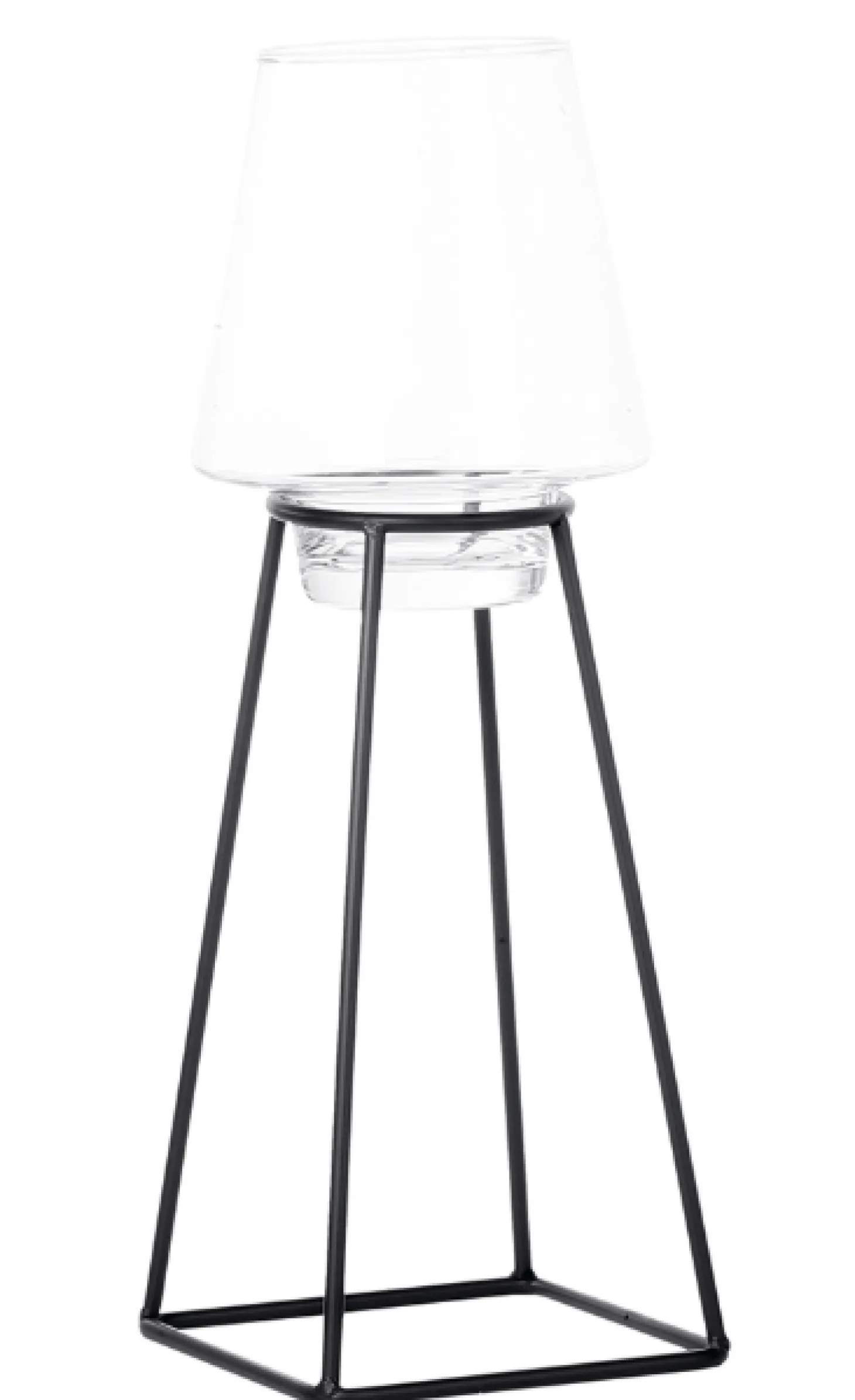 Erhältlich in drei Größen, lässt sich das Windlicht flexibel einsetzen – ob als Einzelstück oder in Kombination mit anderen Größen. Es eignet sich hervorragend für Innenräume wie das Wohnzimmer, den Flur oder die Fensterbank. Dank seines robusten Eisenrahmens bringt es eine rustikale und doch schlichte Note in deine Dekoration.