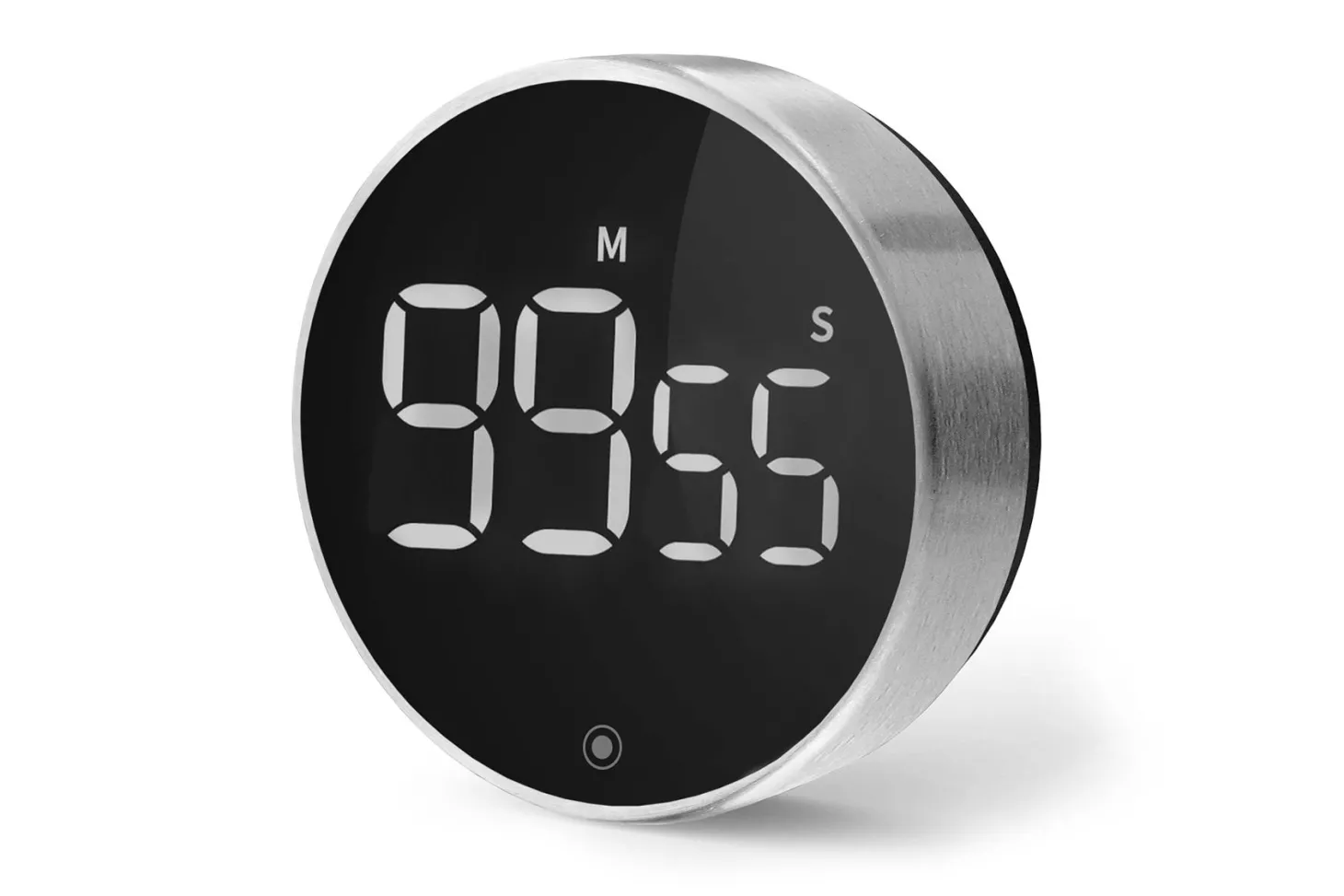 Besonders praktisch ist die magnetische Rückseite, mit der der Kurzzeitwecker bequem an metallischen Oberflächen wie Kühlschränken oder Dunstabzugshauben angebracht werden kann. Der Alarm lässt sich individuell einstellen: Sie haben die Wahl zwischen zwei Lautstärken oder einer stummen Benachrichtigung, bei der das Display blinkt. Die Zeit lässt sich in präzisen 5-Sekunden-Schritten bis zu einer maximalen Dauer von 99 Minuten und 55 Sekunden einstellen – ideal für vielfältige Einsatzmöglichkeiten, von der Küche bis zum Büro.
